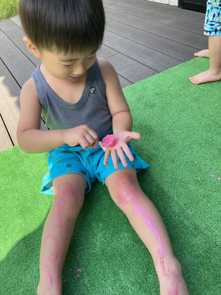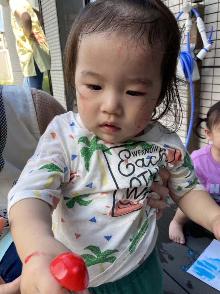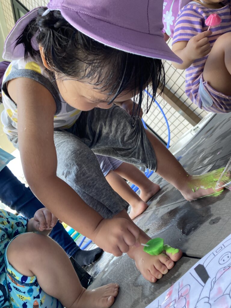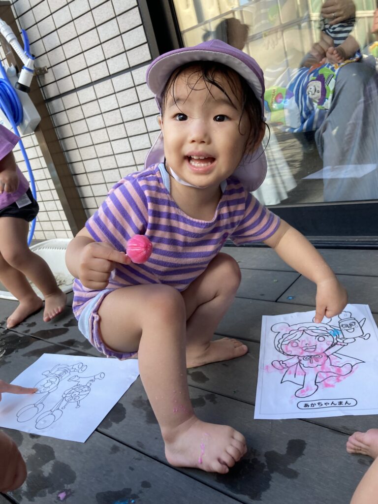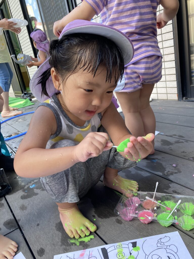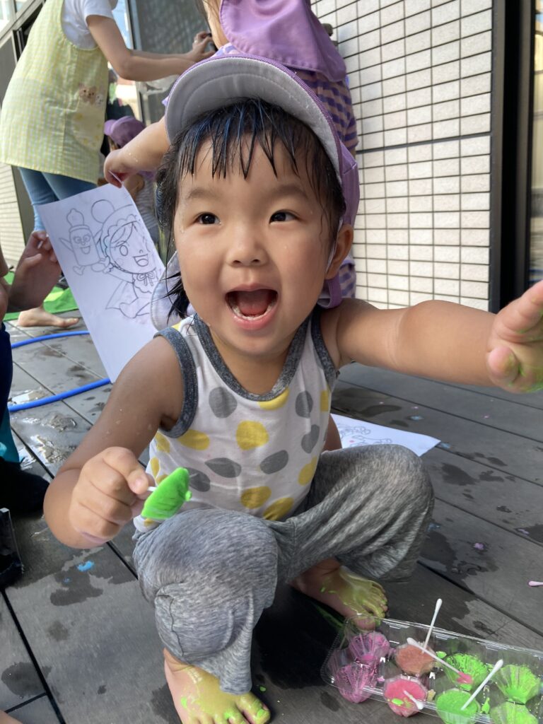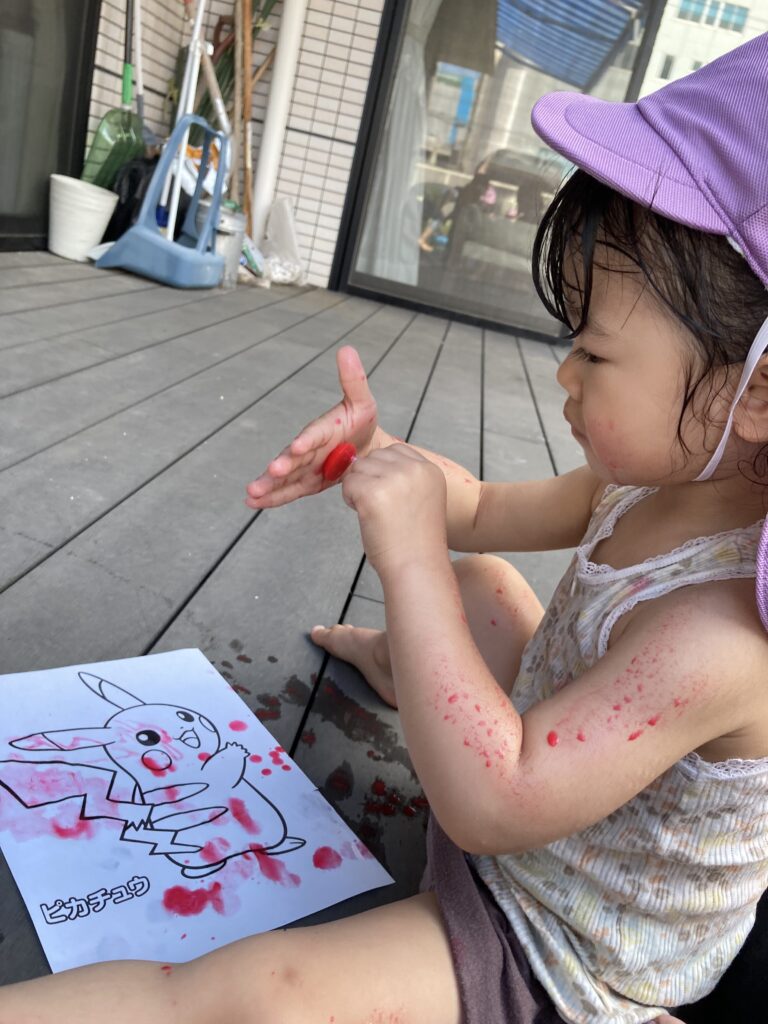 テラスで塗り絵をしたり、ボディペイントをして遊びました?