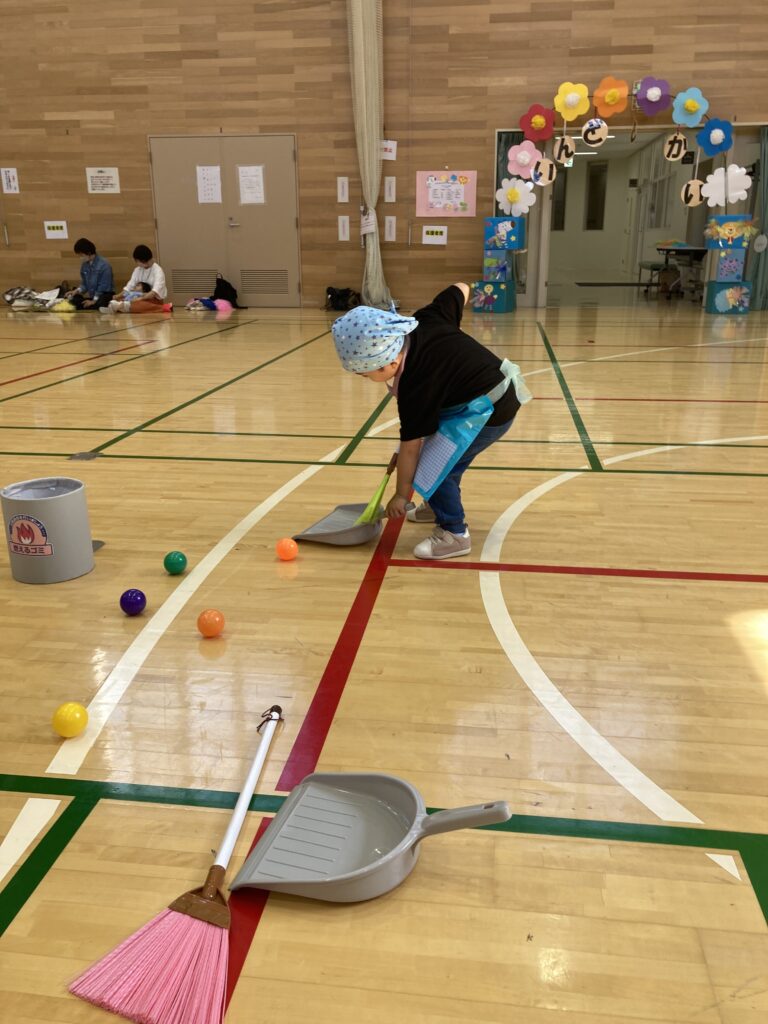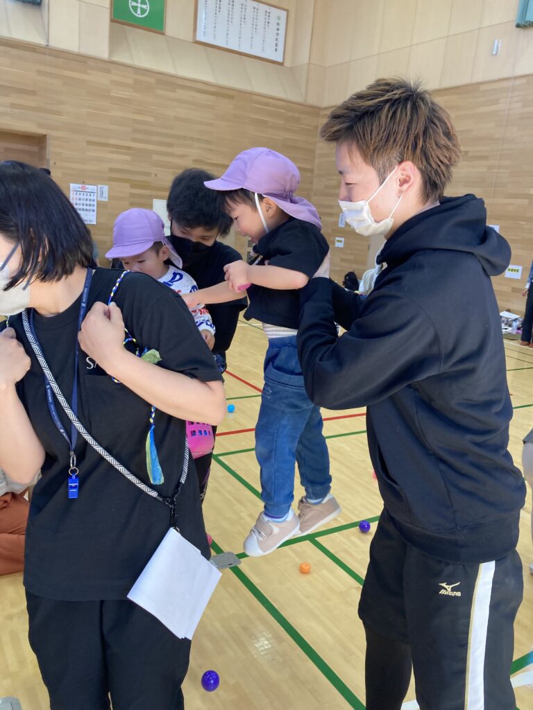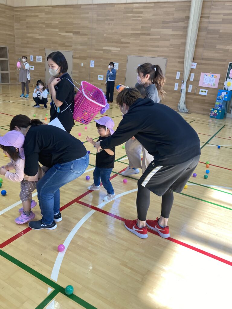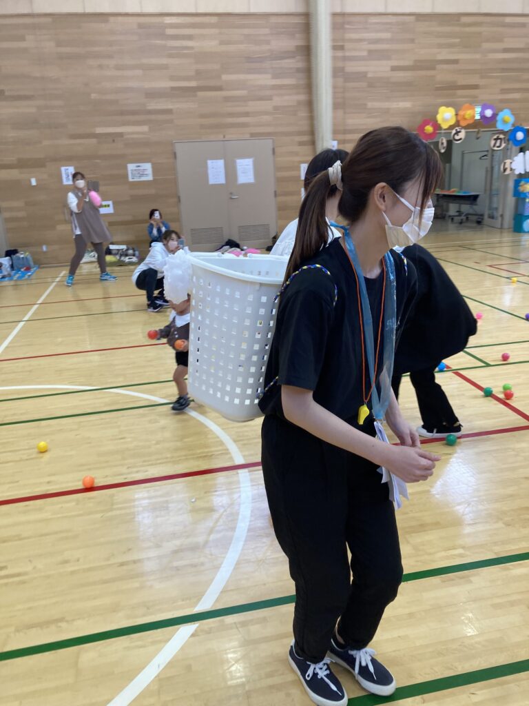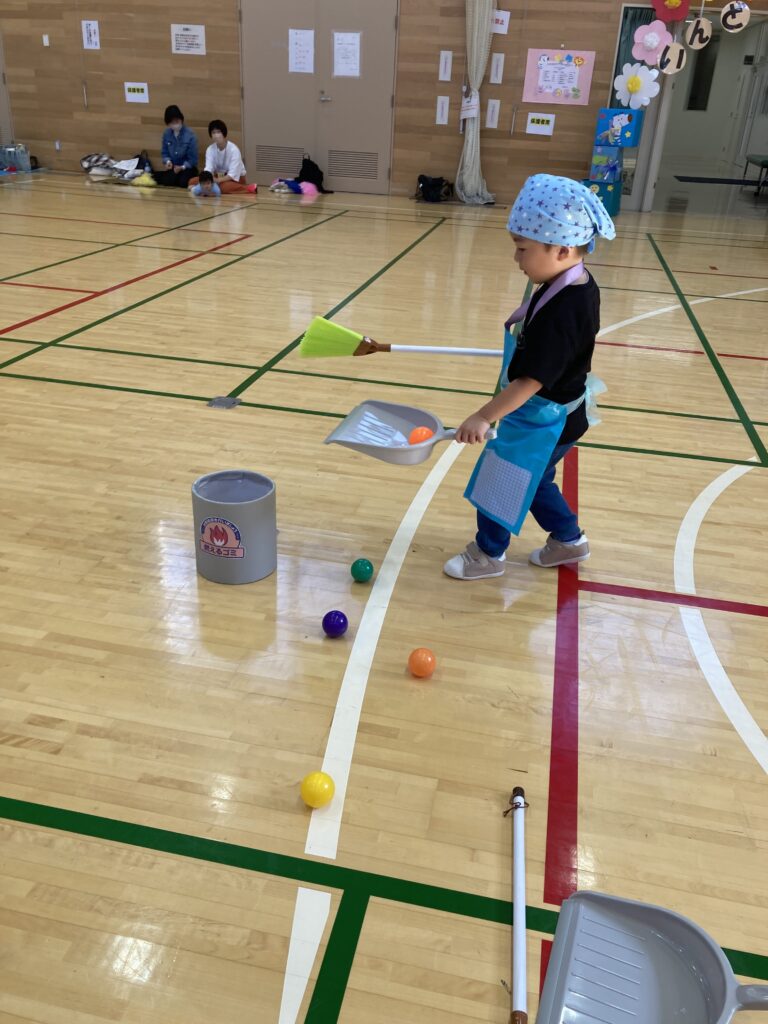 紫チーム?と白チーム⚪️に分かれて保育士の持つカゴに多く入れた方が勝ちです⭐️