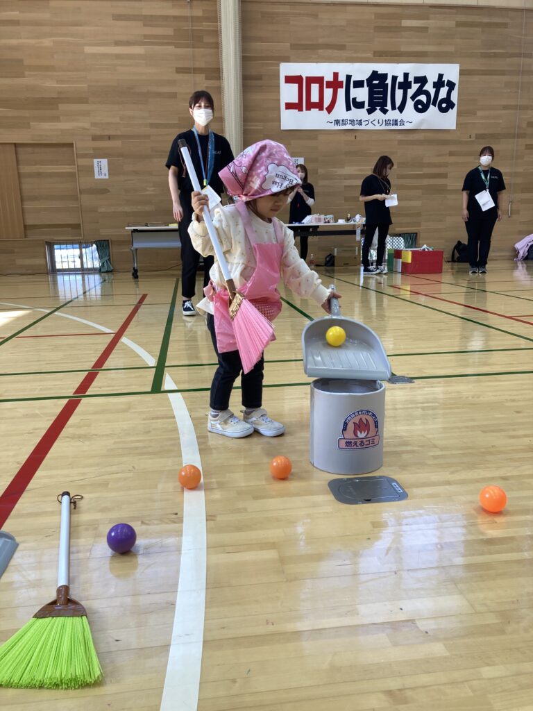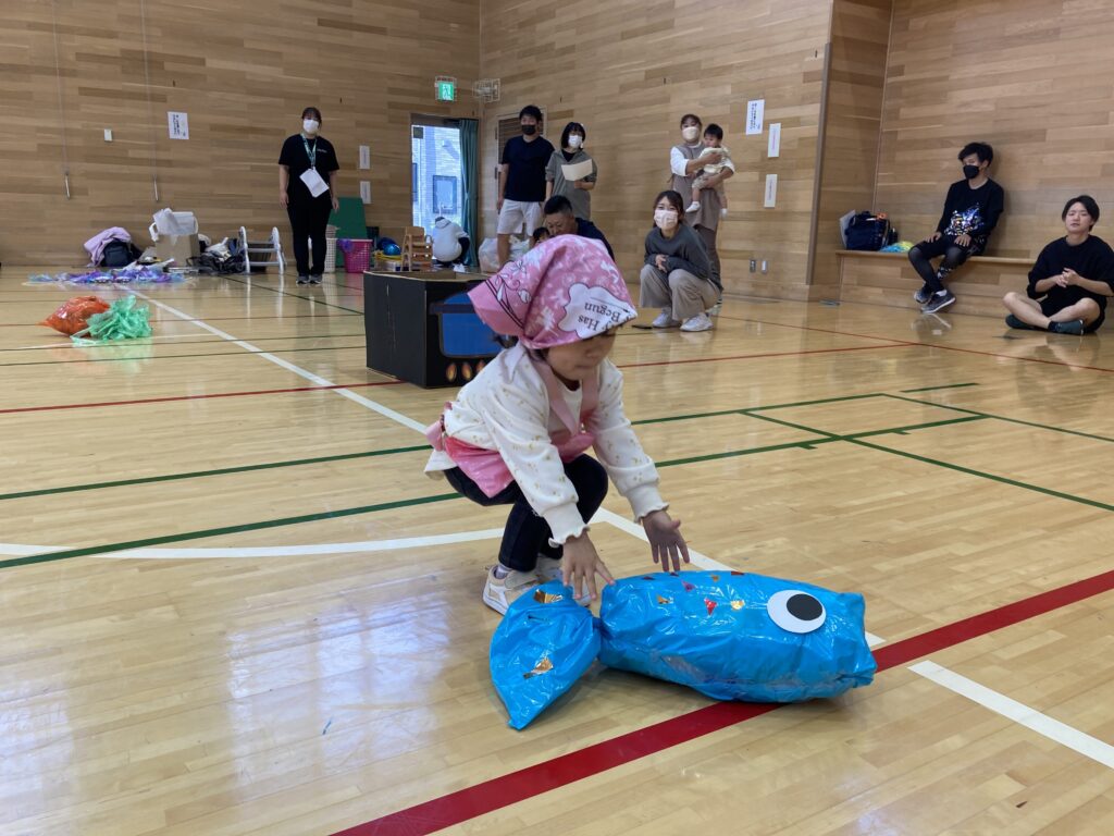 次はにじくみさんの親子競技『バイキンマンをやっつけろ』