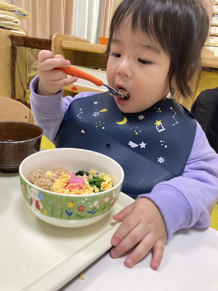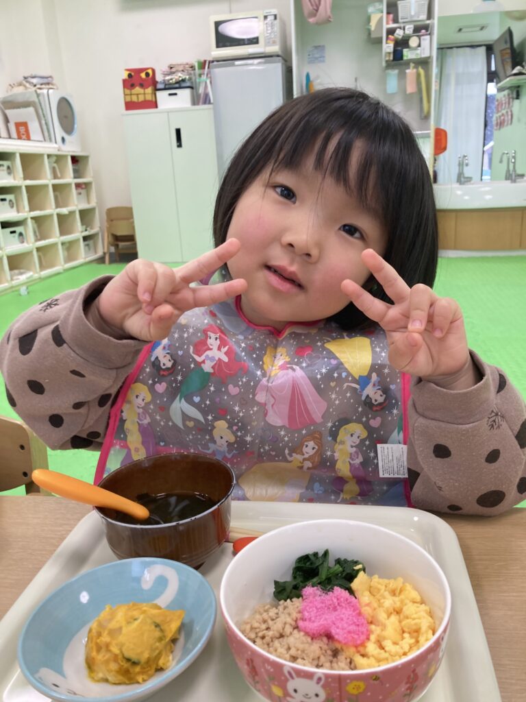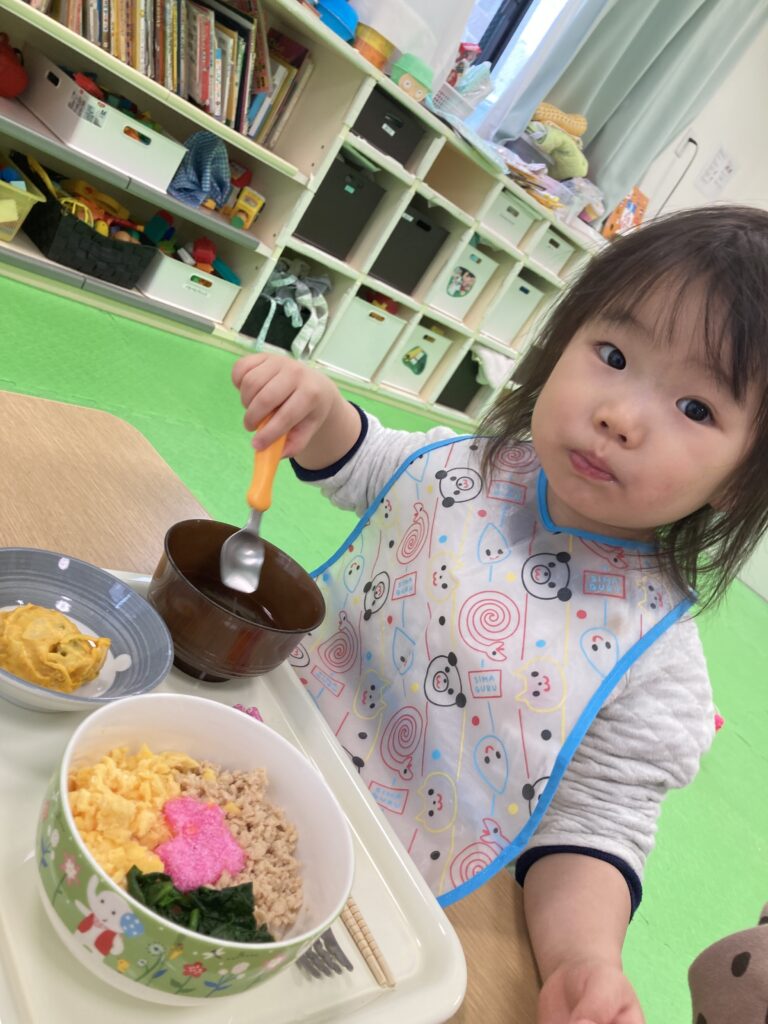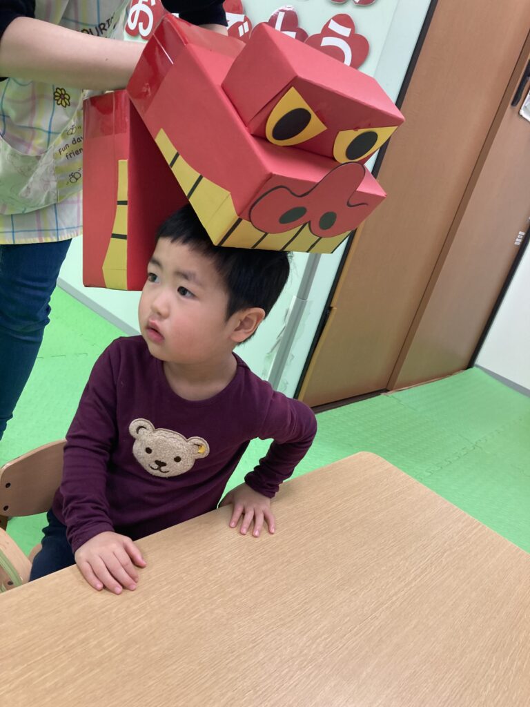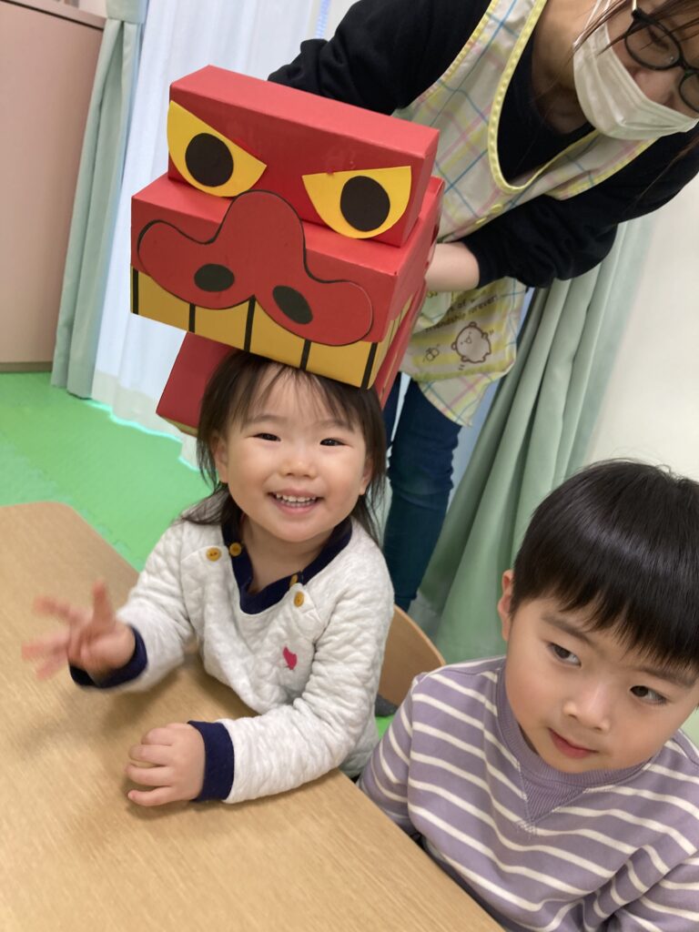 獅子舞に頭をガブっとしてもらい、今年1年も無病息災を願いました?初めは獅子舞に怖がっていたお友達も、この後一緒に遊んだりご飯を食べさせてくれるなどすぐに仲良しに??