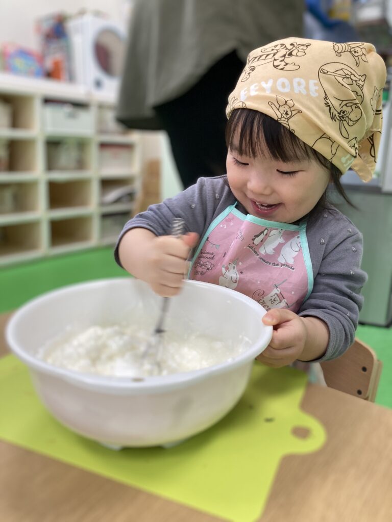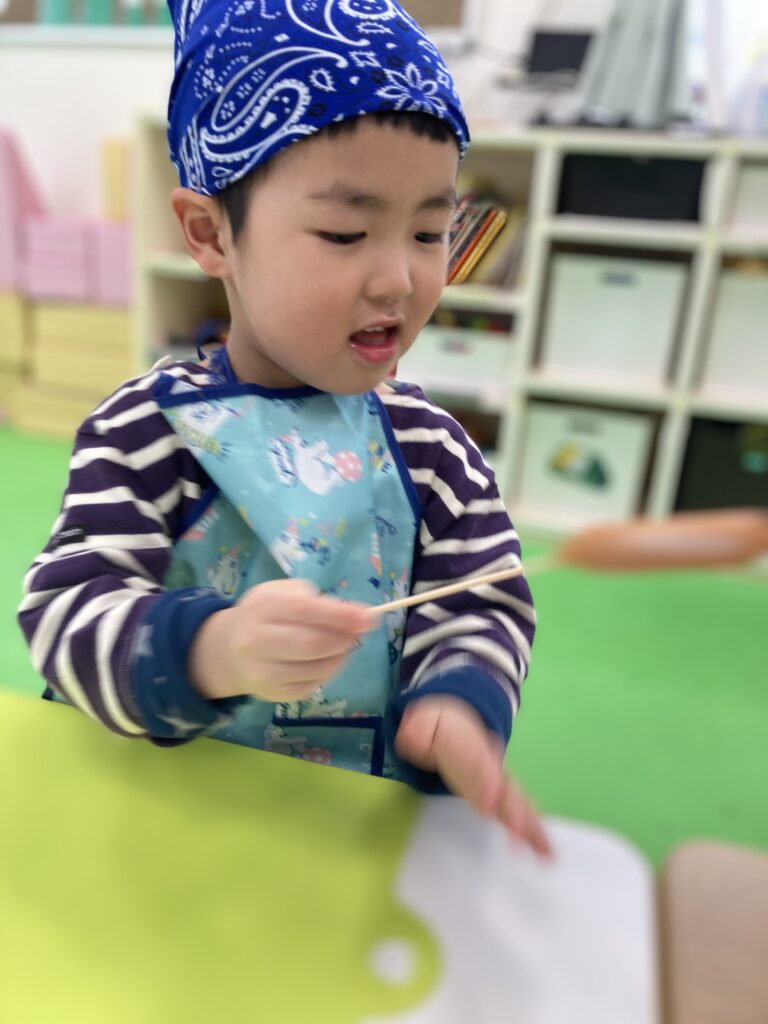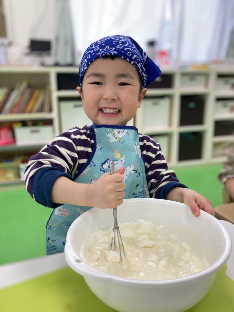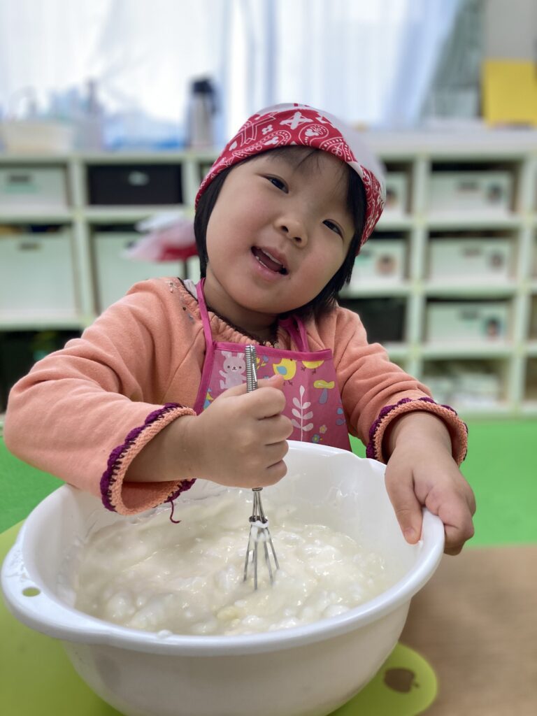 包丁を持つ姿もとっても上手になり、何回混ぜ混ぜしたことか、、。?