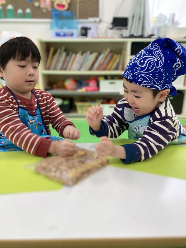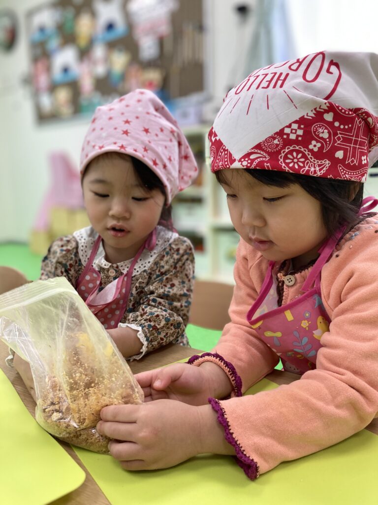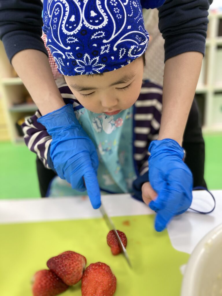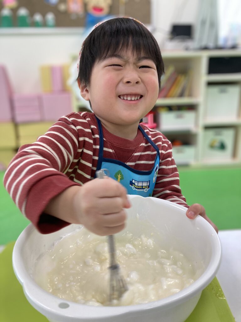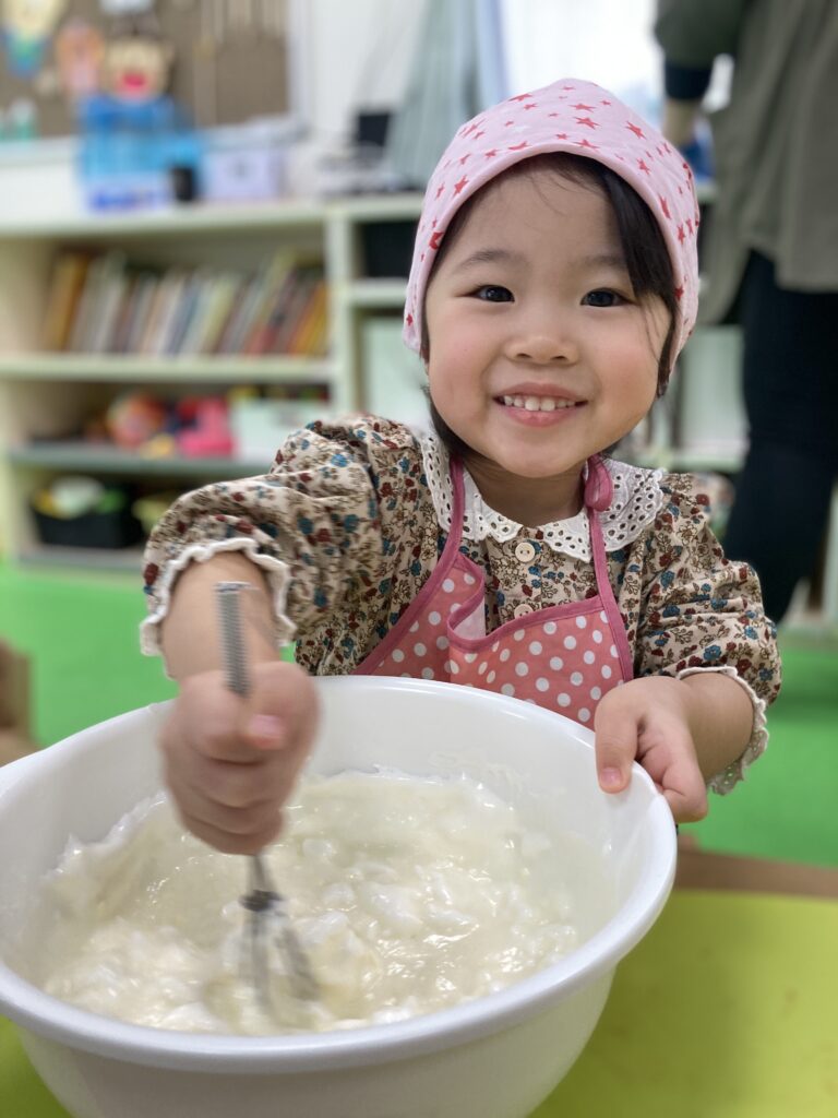 包丁を持つ姿もとっても上手になり、何回混ぜ混ぜしたことか、、。?