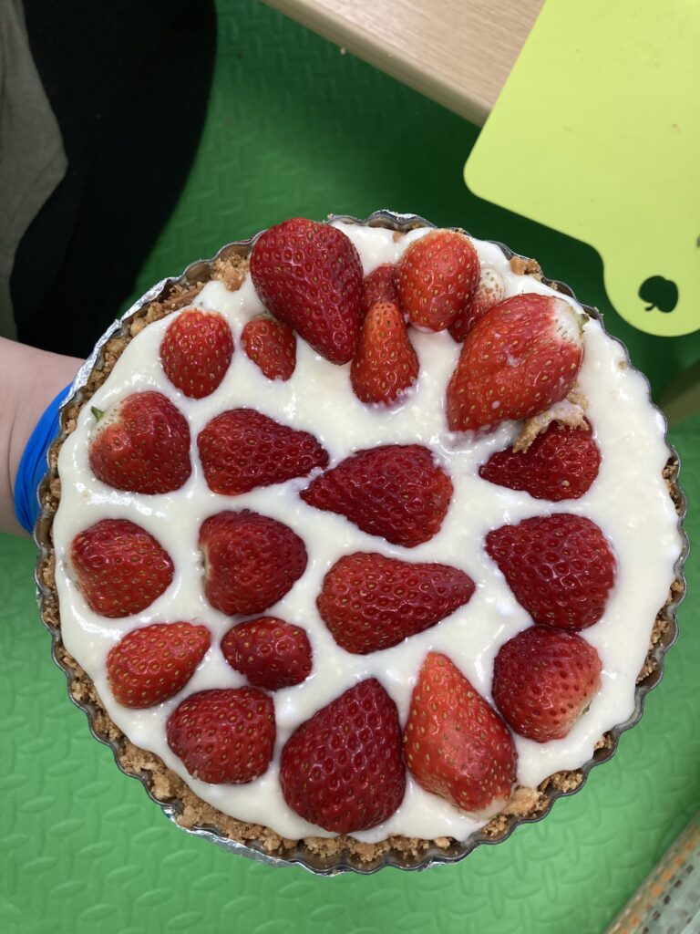 みんなの作ってくれたタルトとチーズドックをにじくみさんに