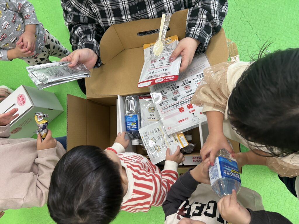 後日、園で行う避難訓練の際に、実際に非常食を食べてみたり、使い方を知る機会を作りたいと思います☺️