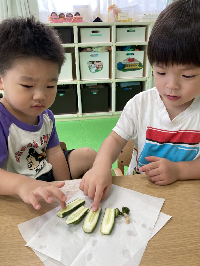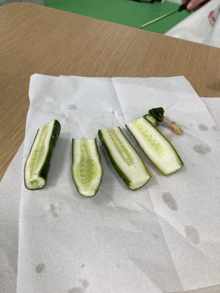 などと、きゅうりのおいしい食べ方の案を出し合っていたものの、いざ収穫するときゅうりの中がなんと、