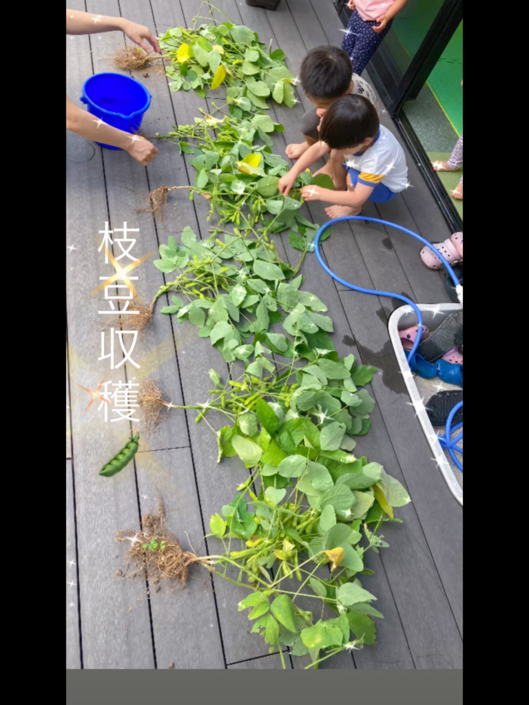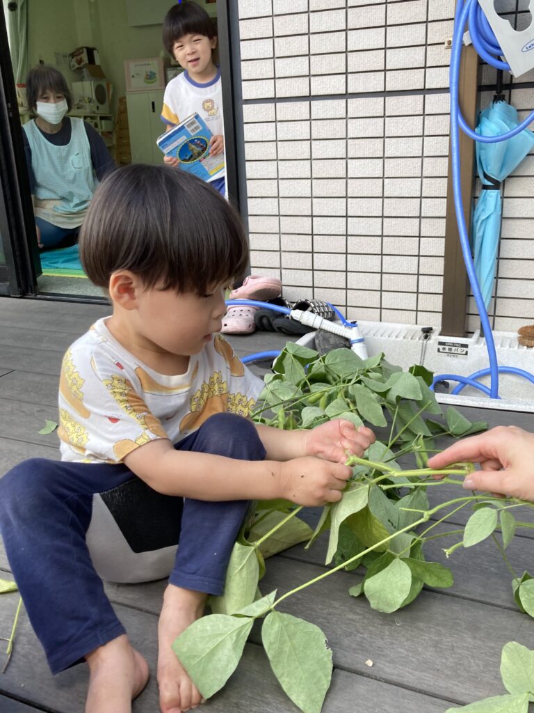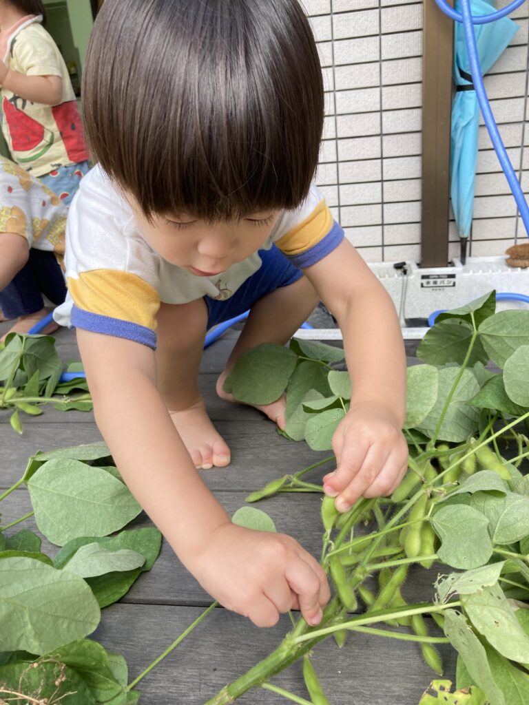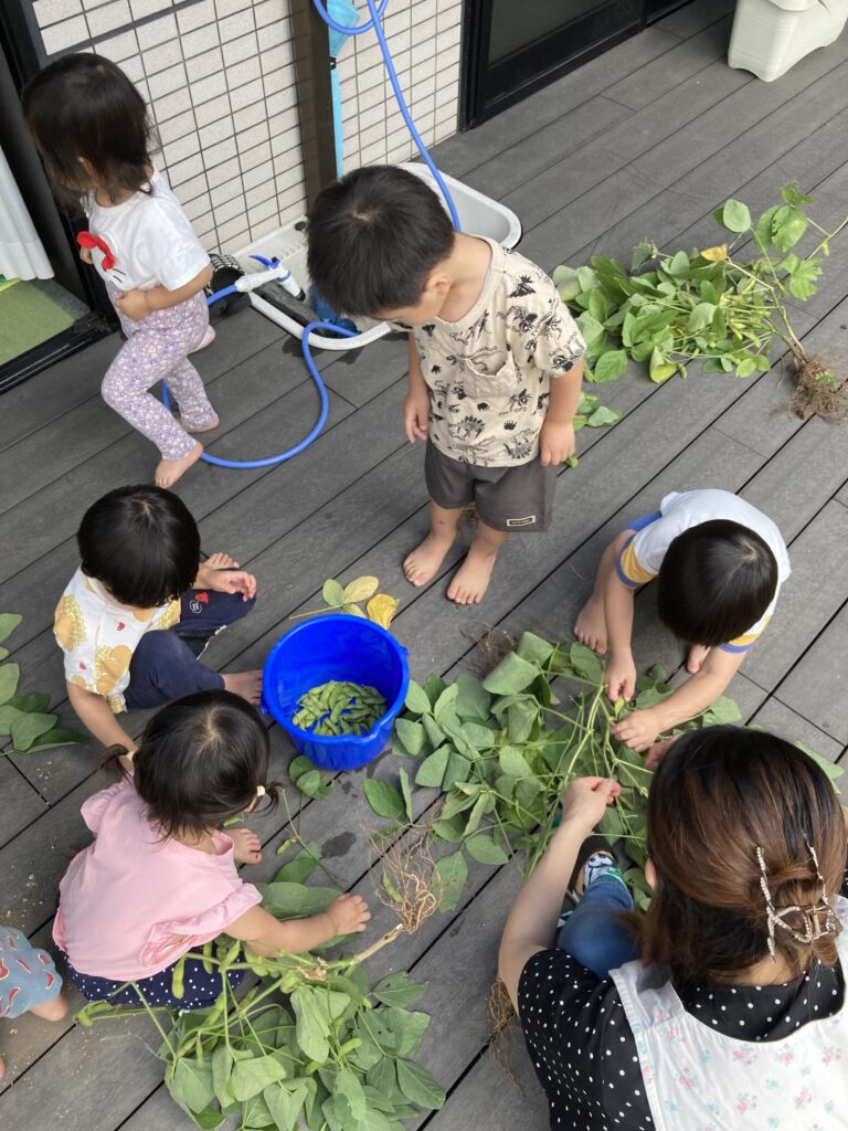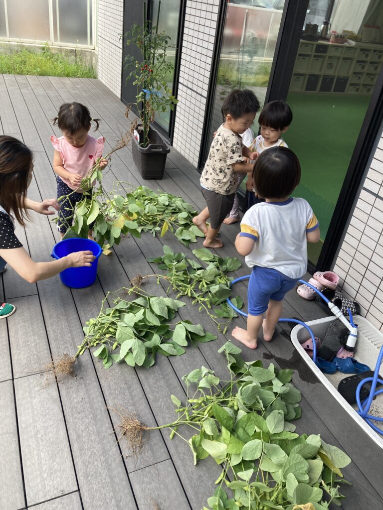 今日は、子ども達が育てた畑の枝豆をみんなで収穫しました😊
