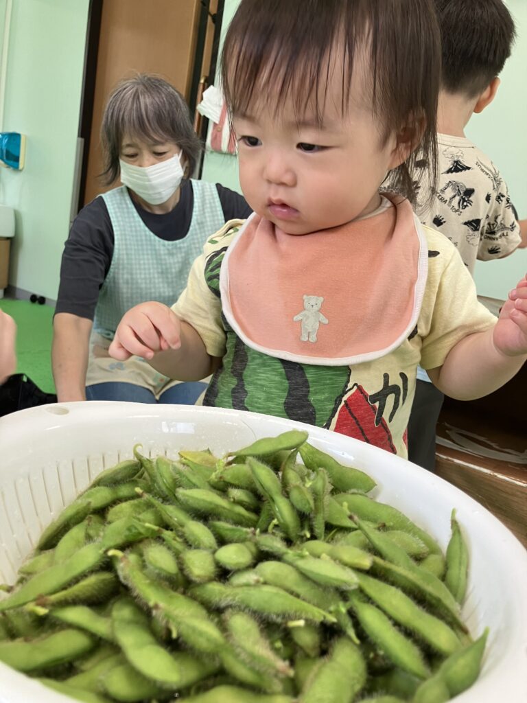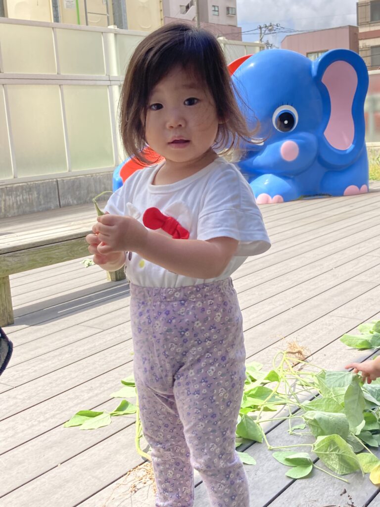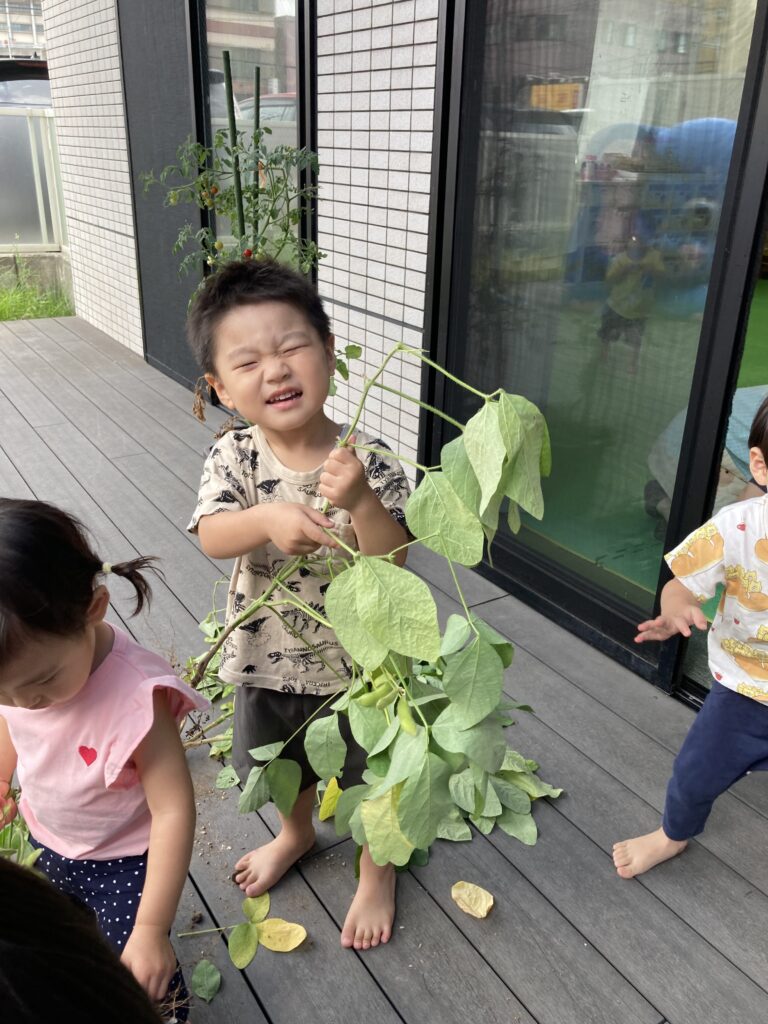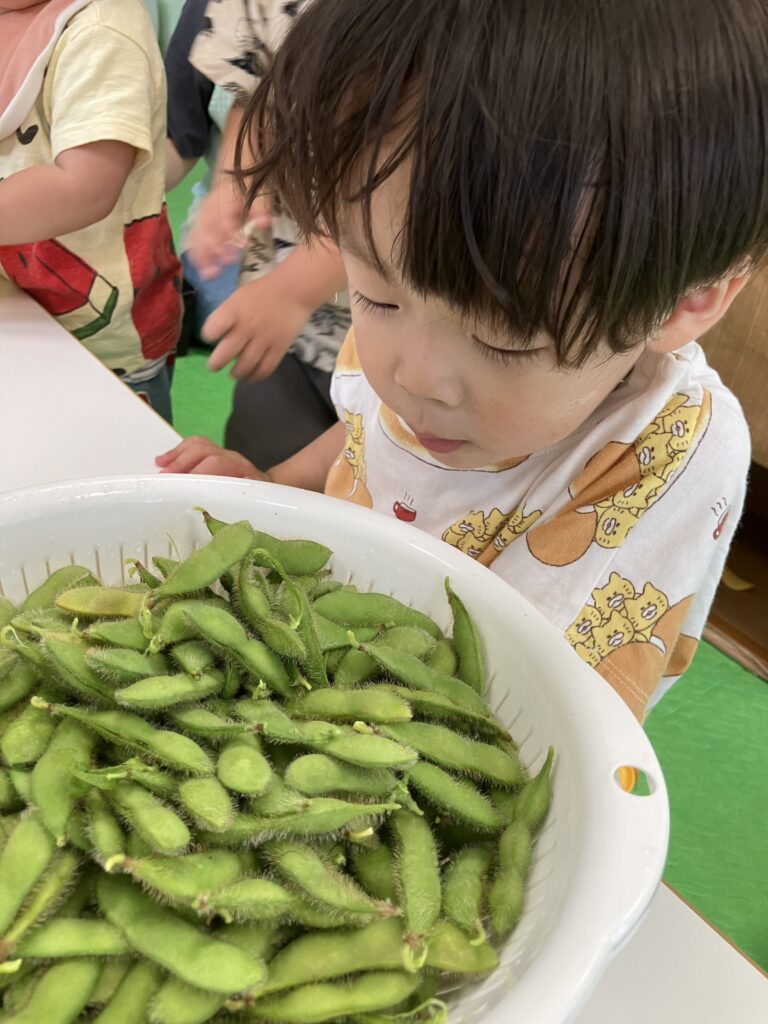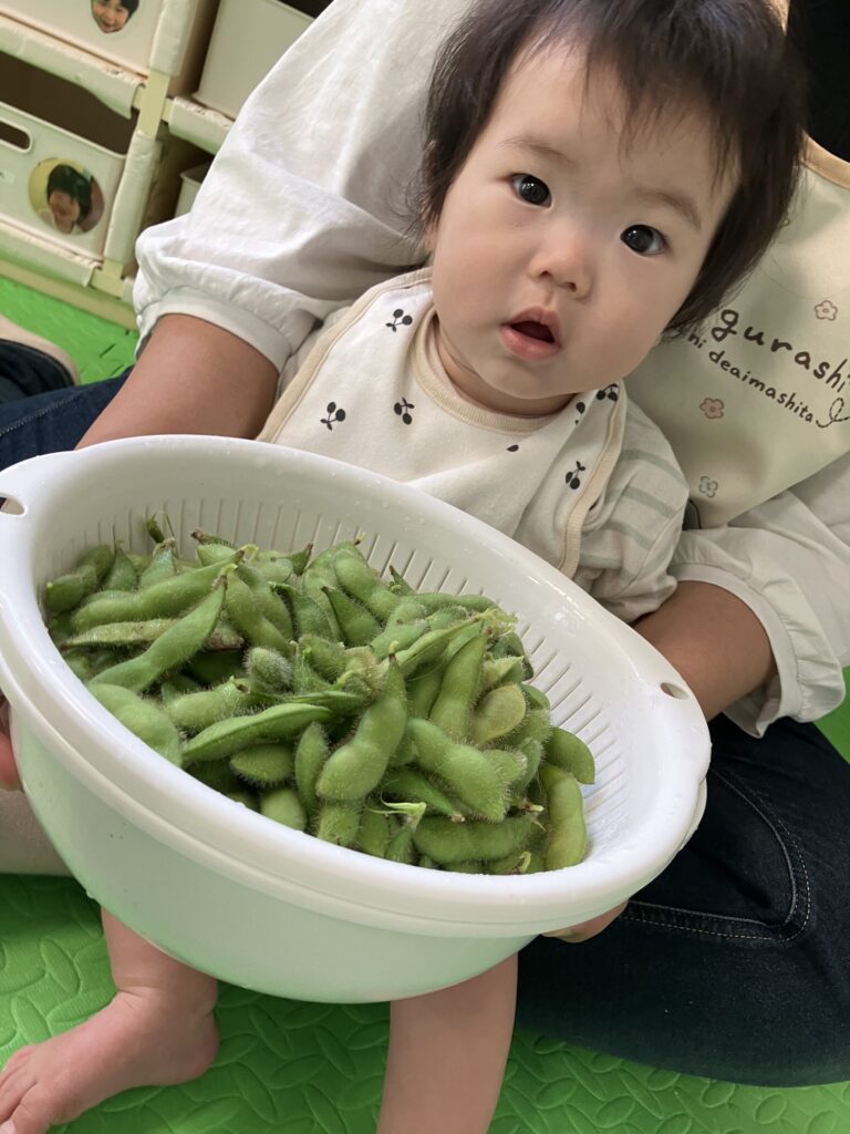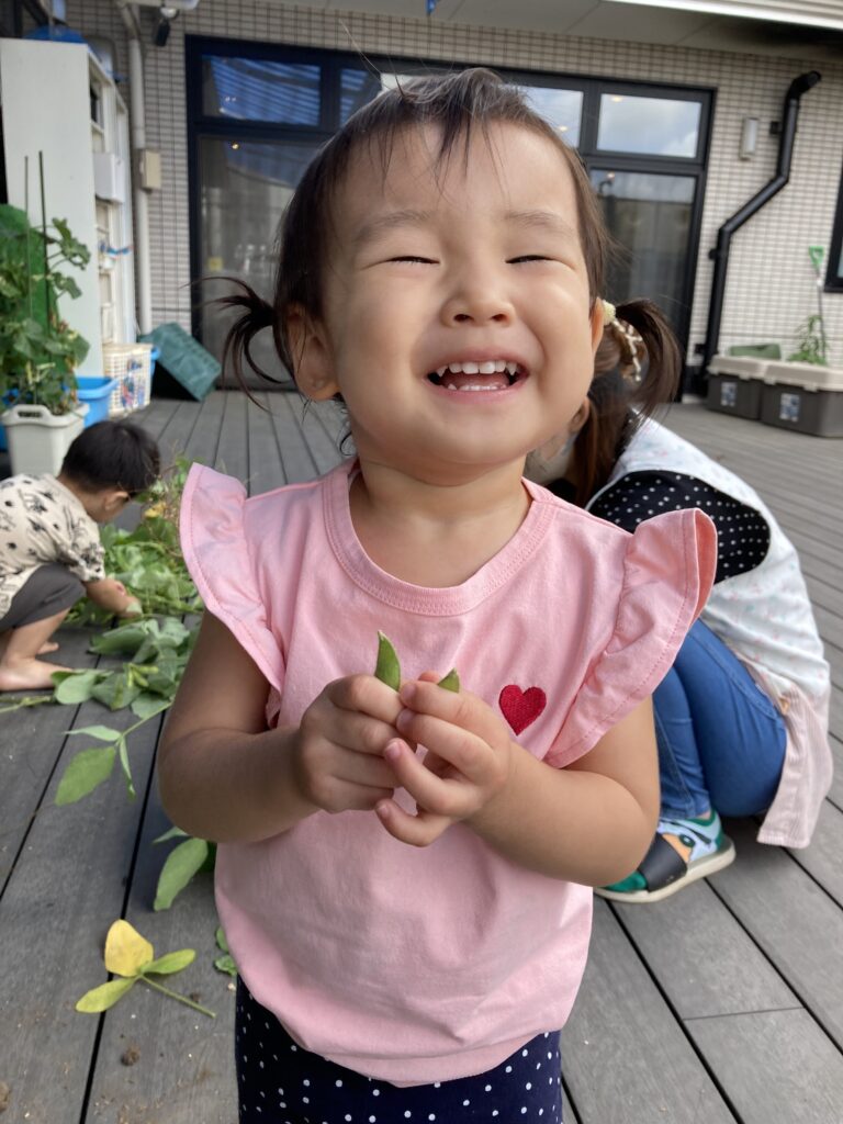 今日は、子ども達が育てた畑の枝豆をみんなで収穫しました😊