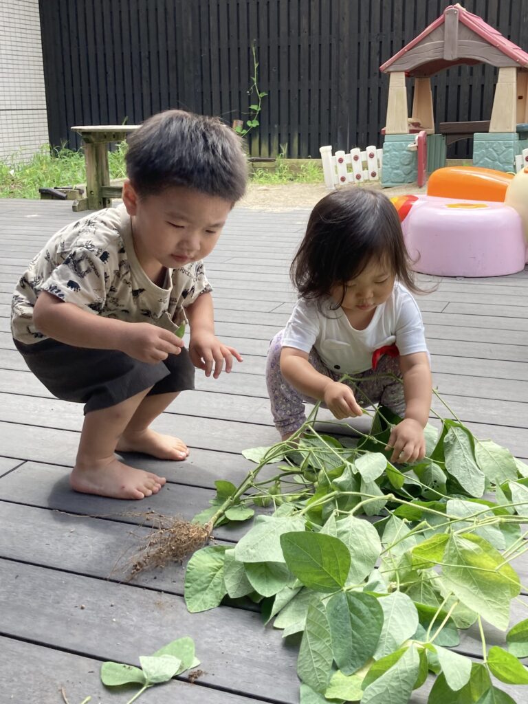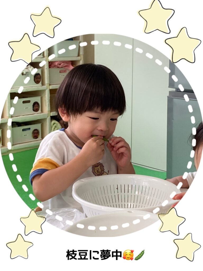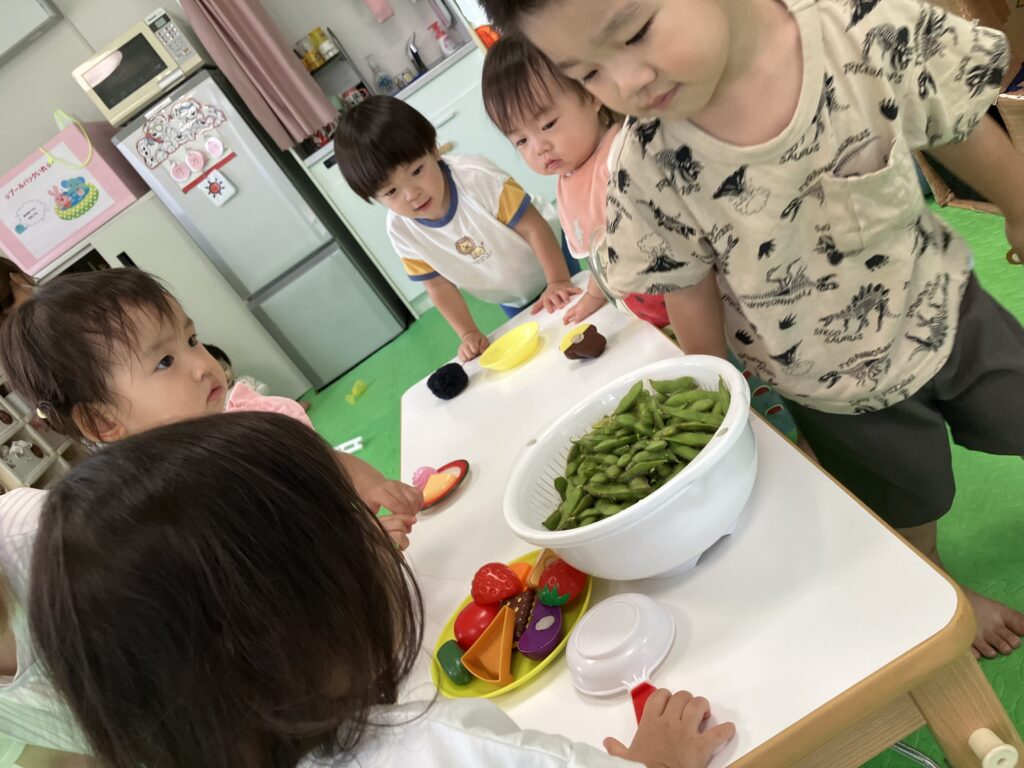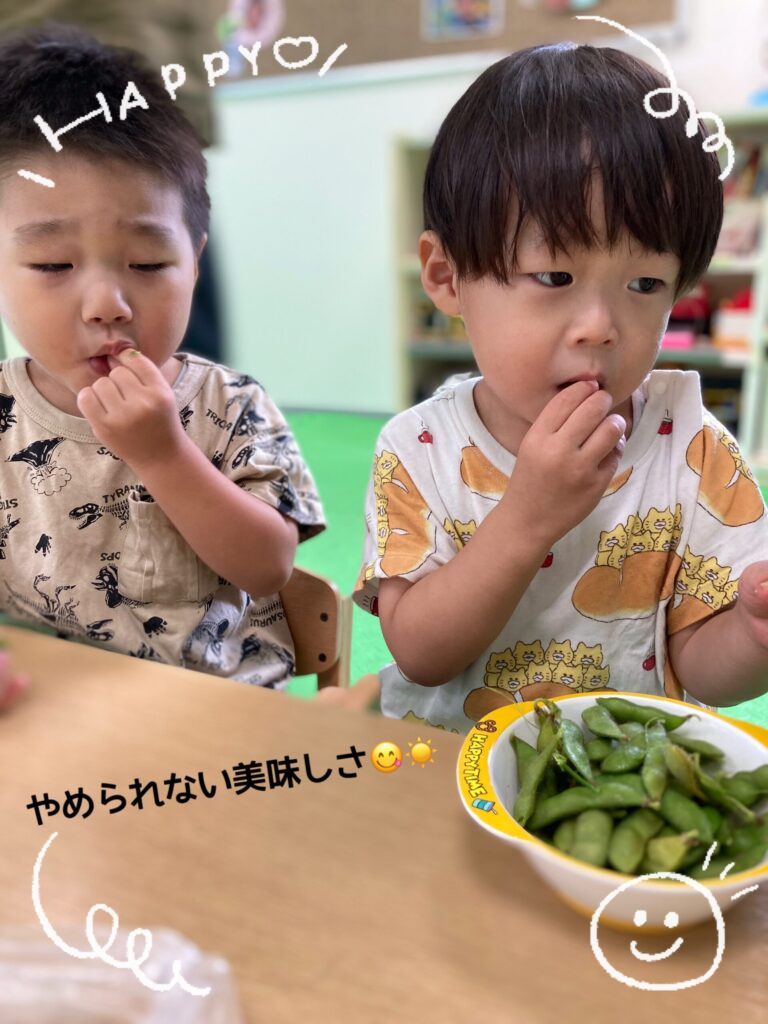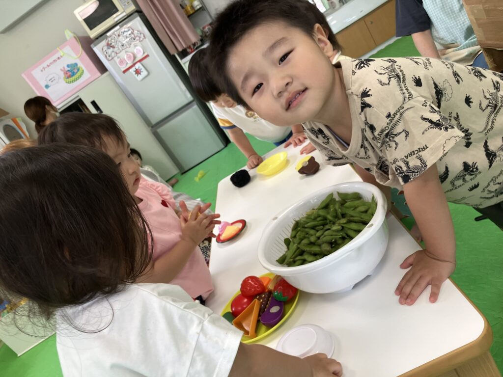 今日は、子ども達が育てた畑の枝豆をみんなで収穫しました😊
