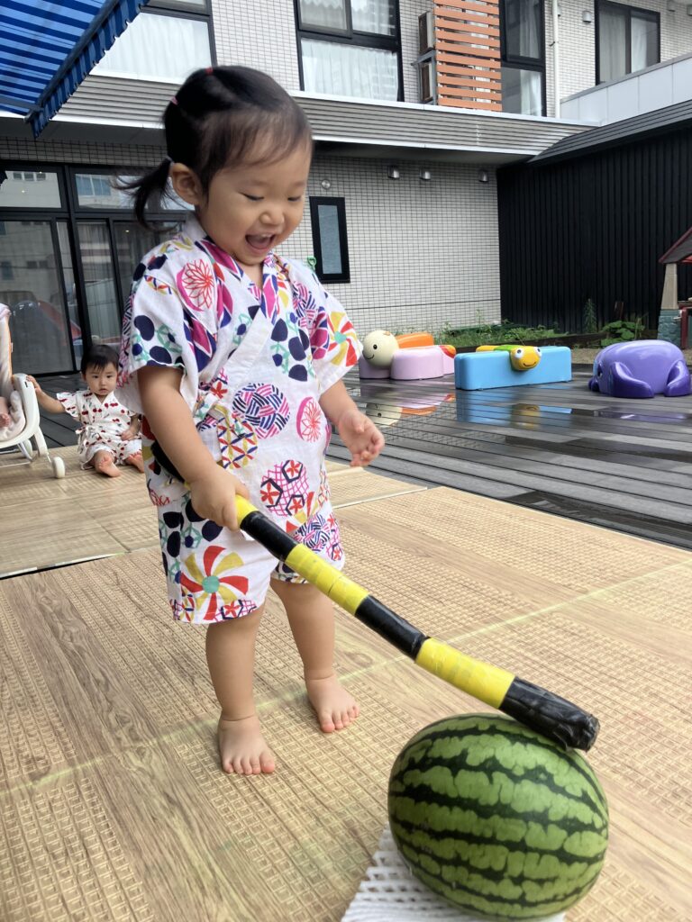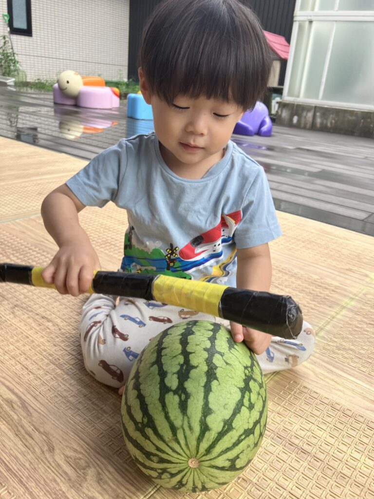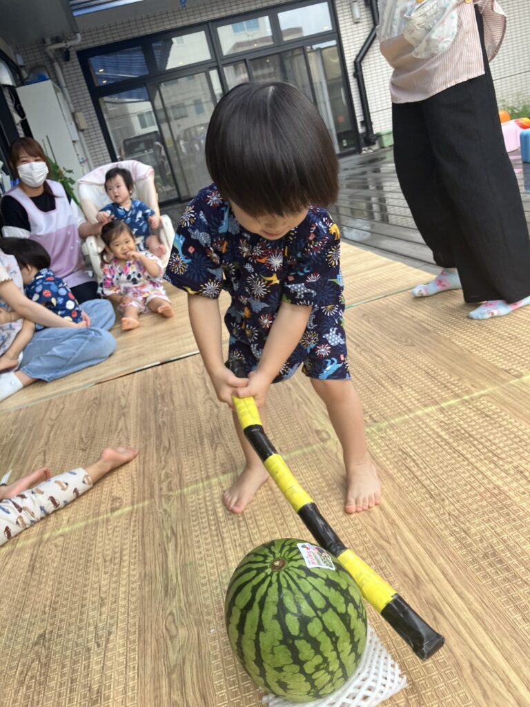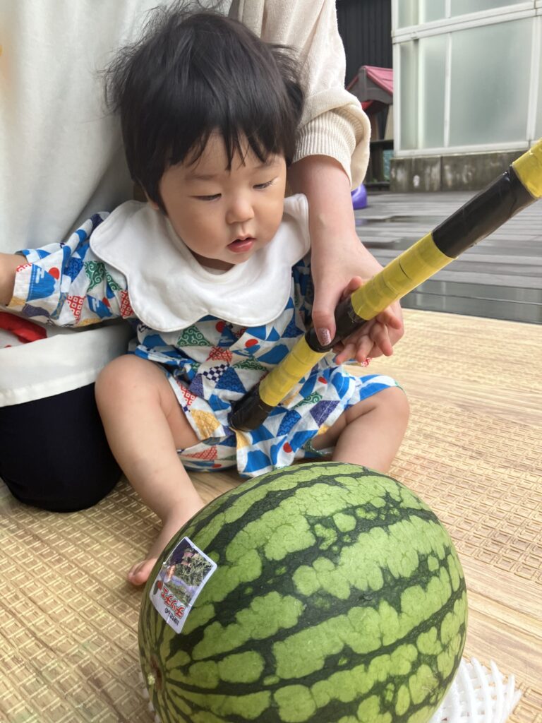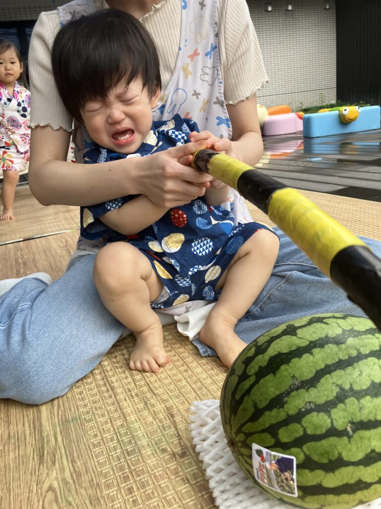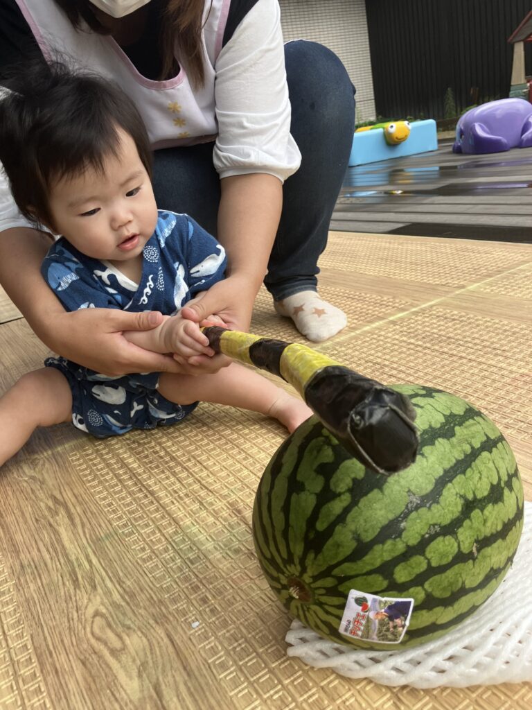 スイカ割り、、ではなく、スイカ叩きをしました!