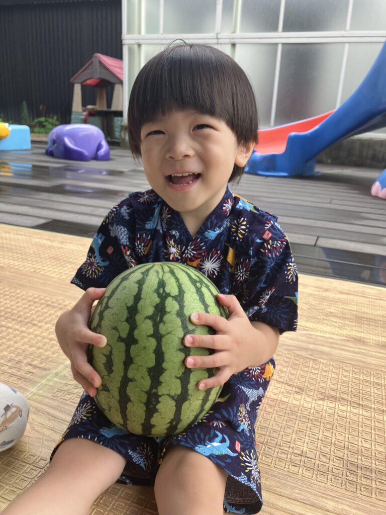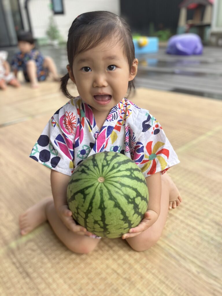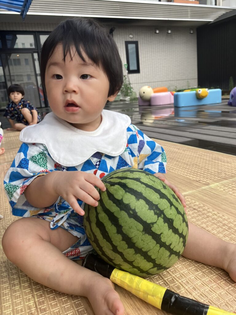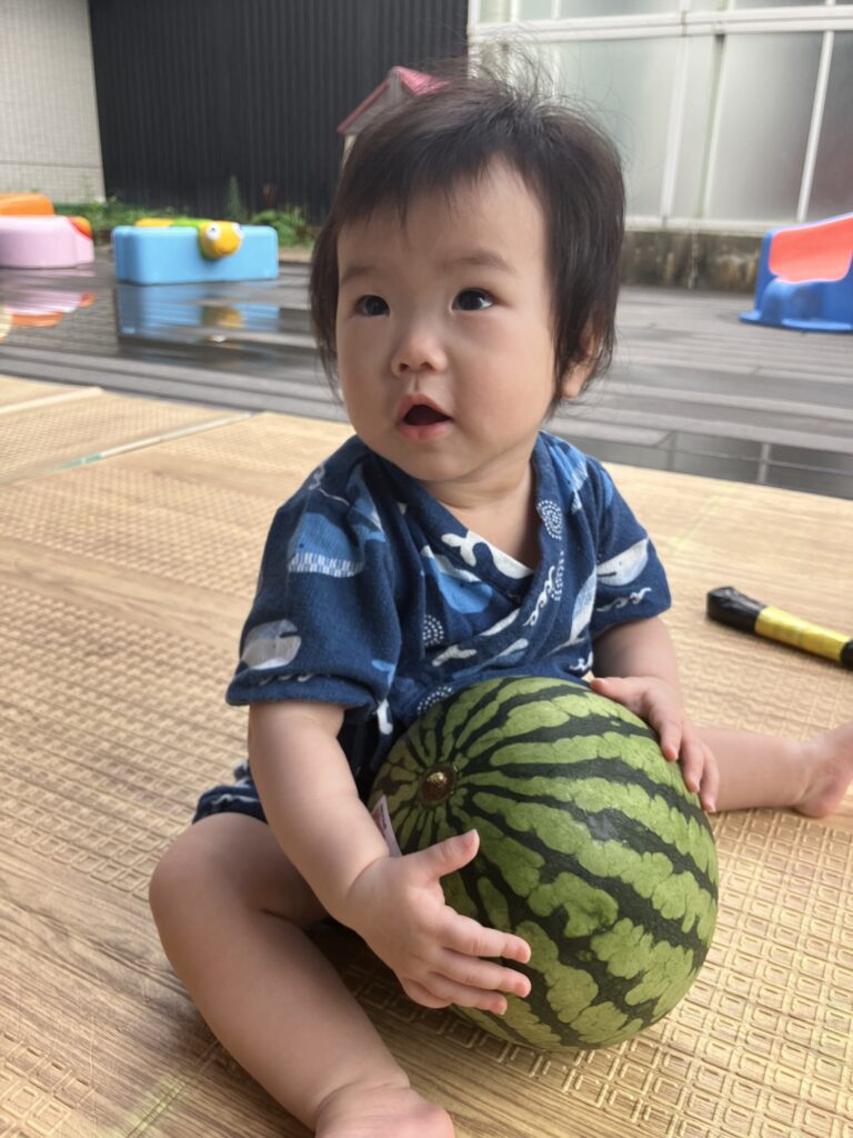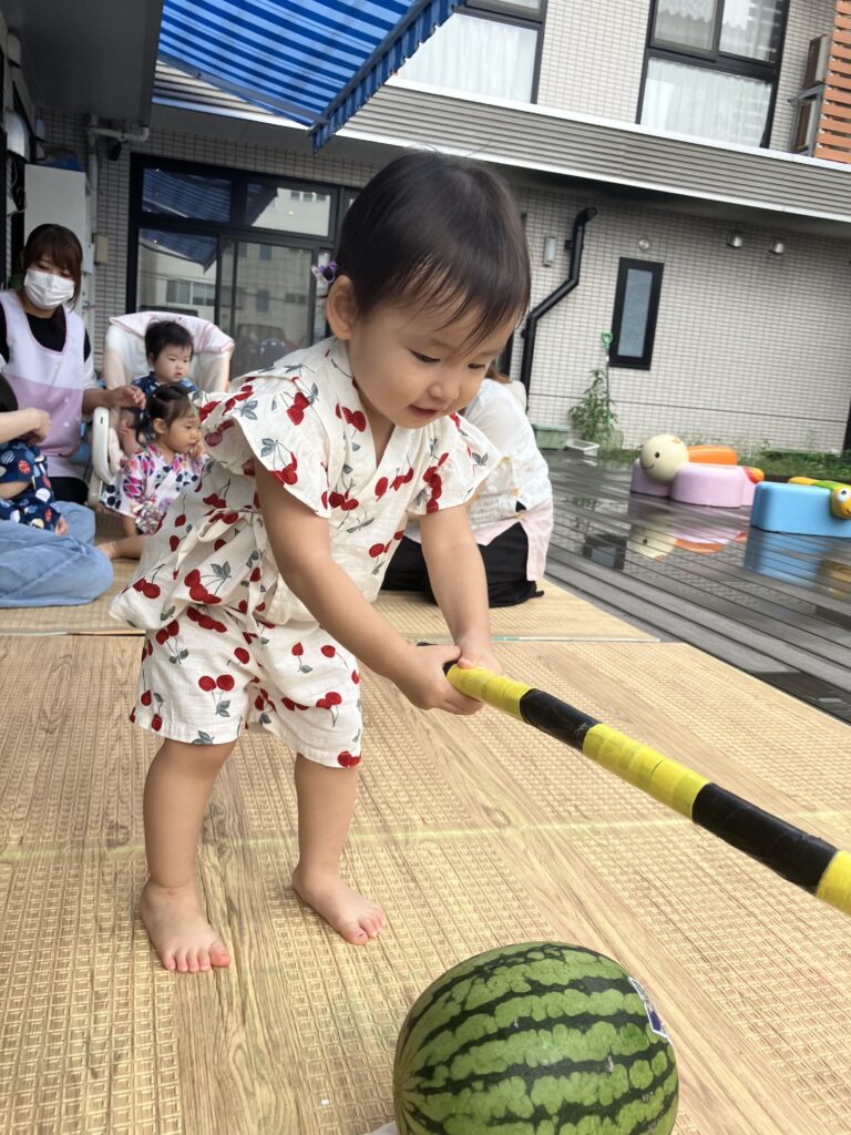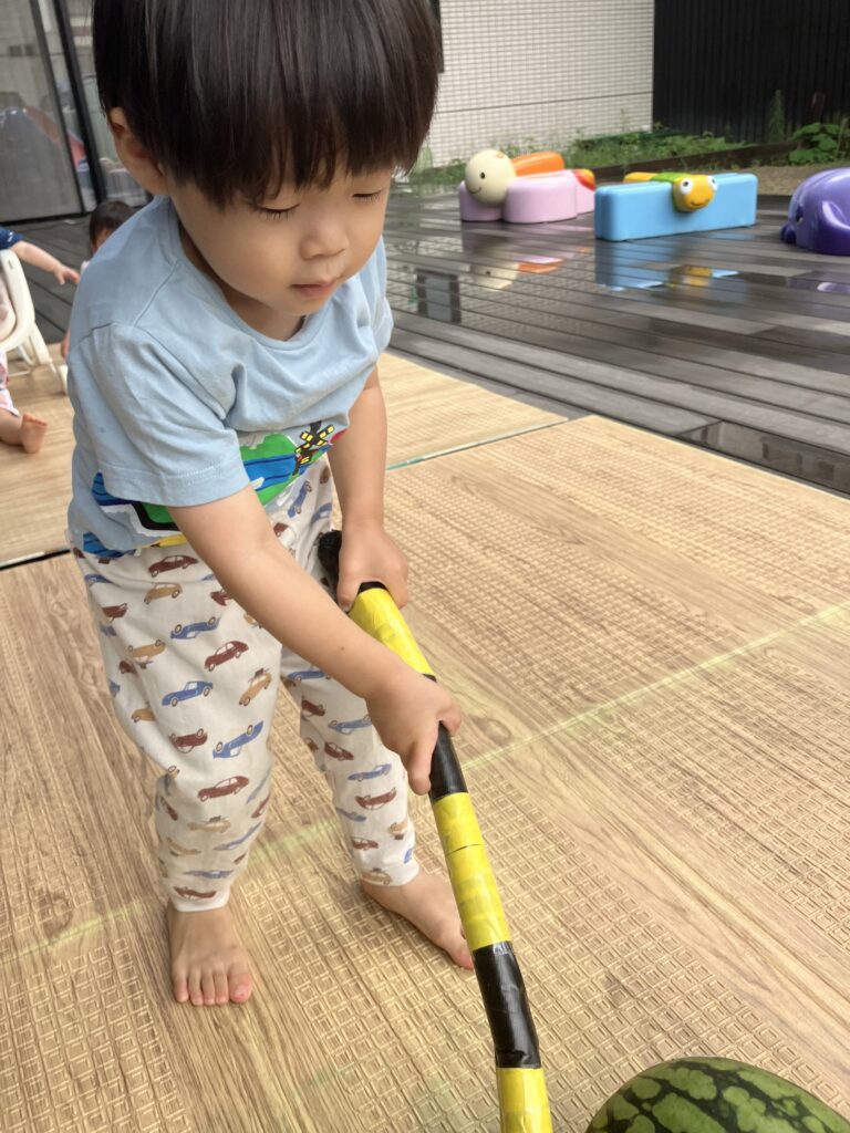 スイカ割り、、ではなく、スイカ叩きをしました!
