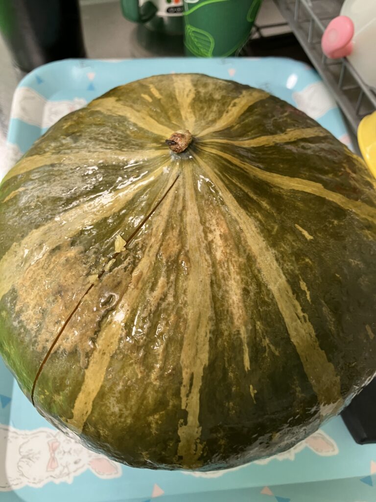 大きなかぼちゃに砂糖、バターを入れてパイシートに包みオーブンへ✨