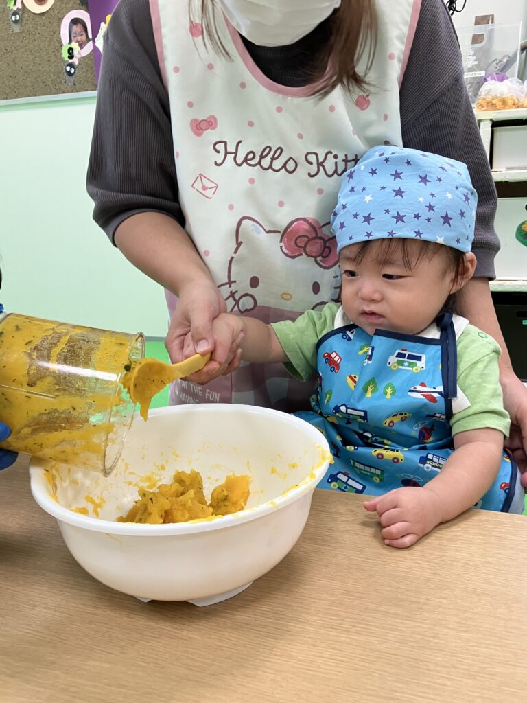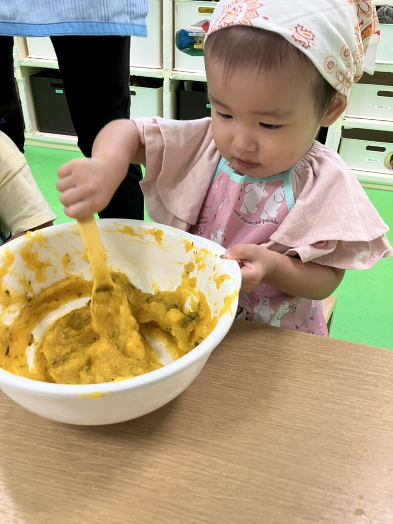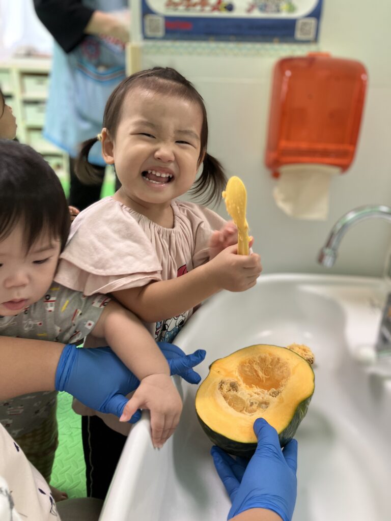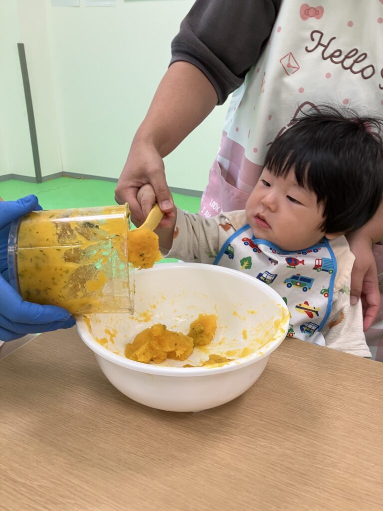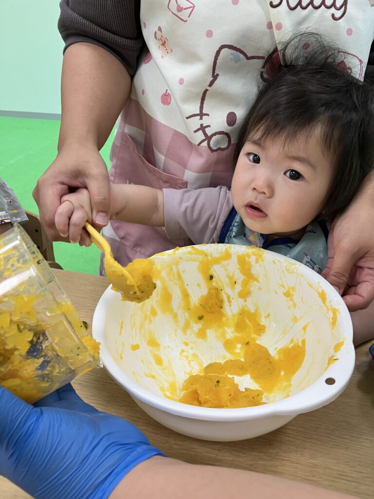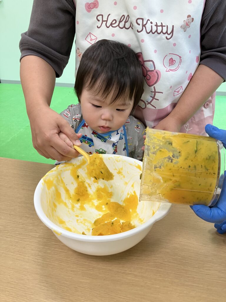 かぼちゃペーストをひよこ組さんにお味見してもらいました✨