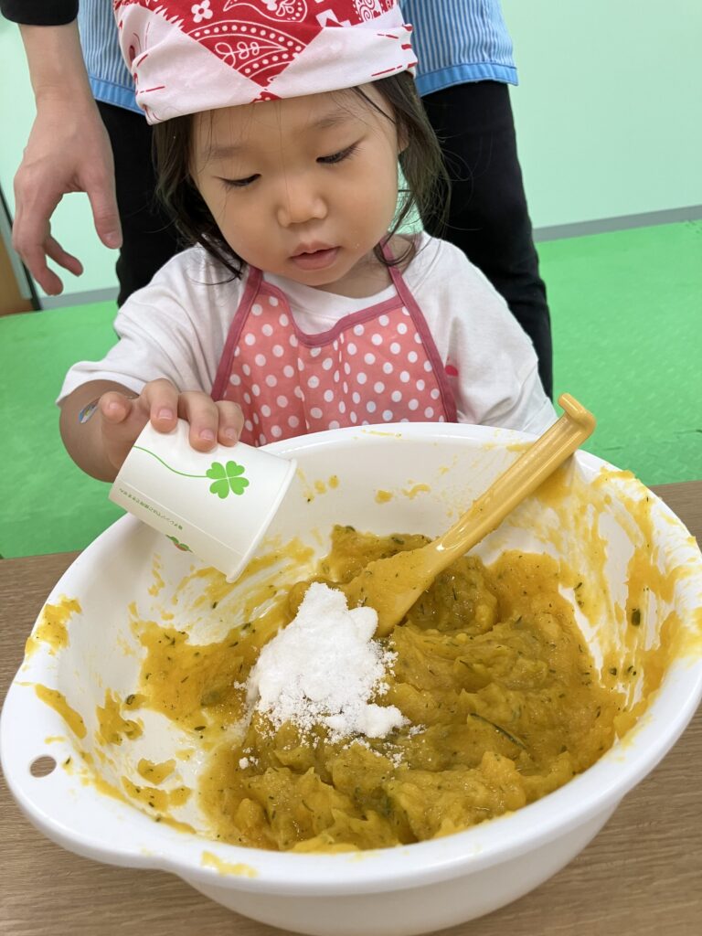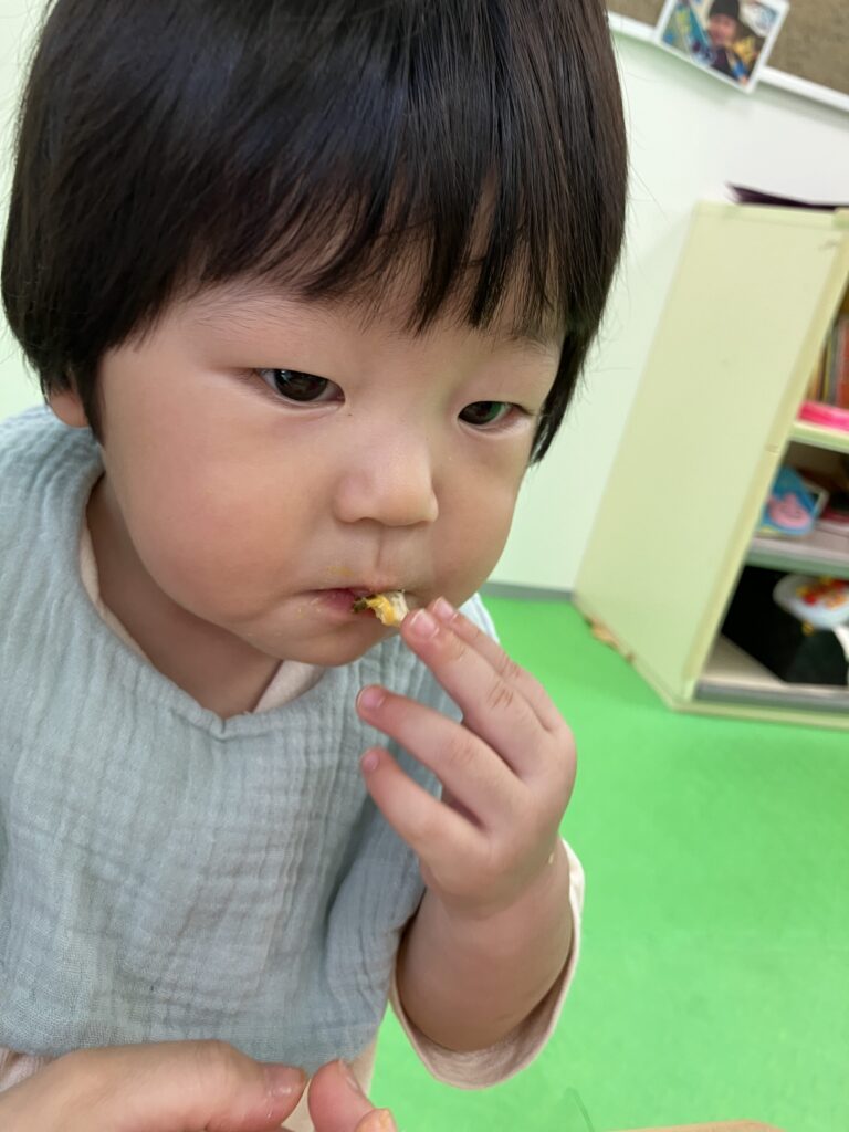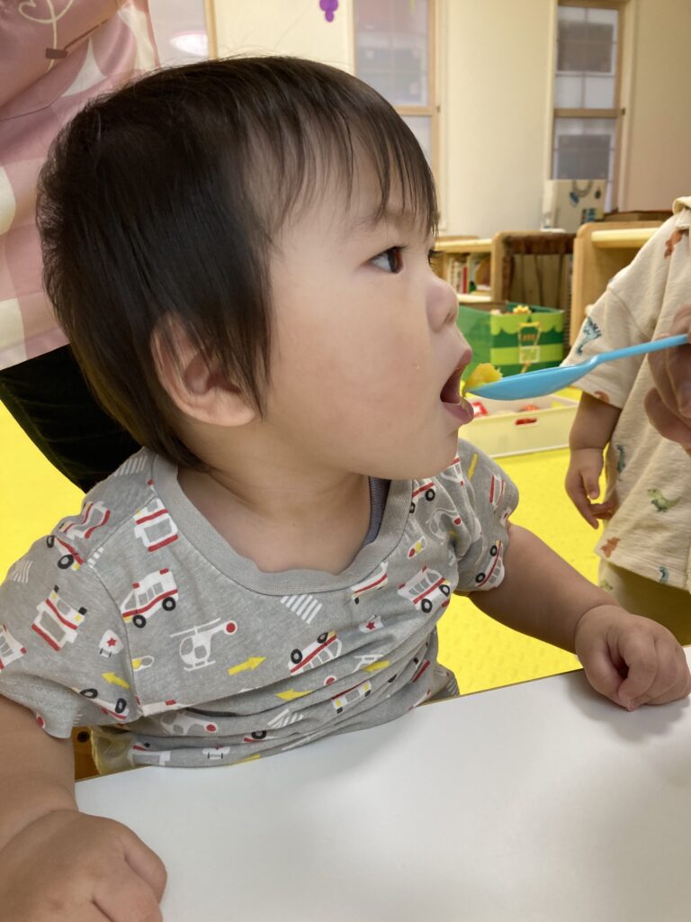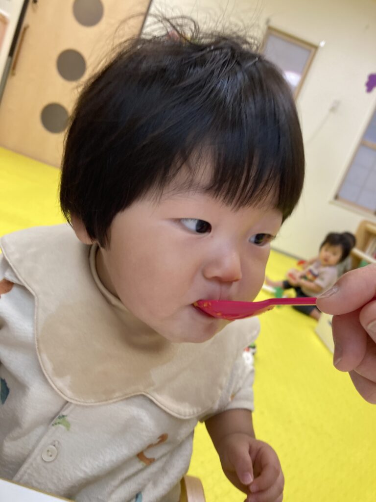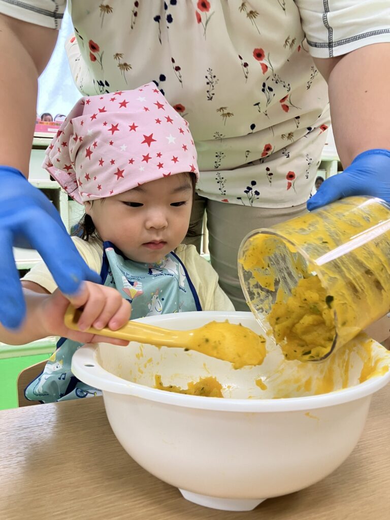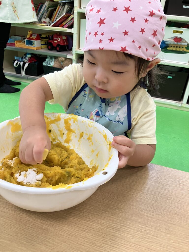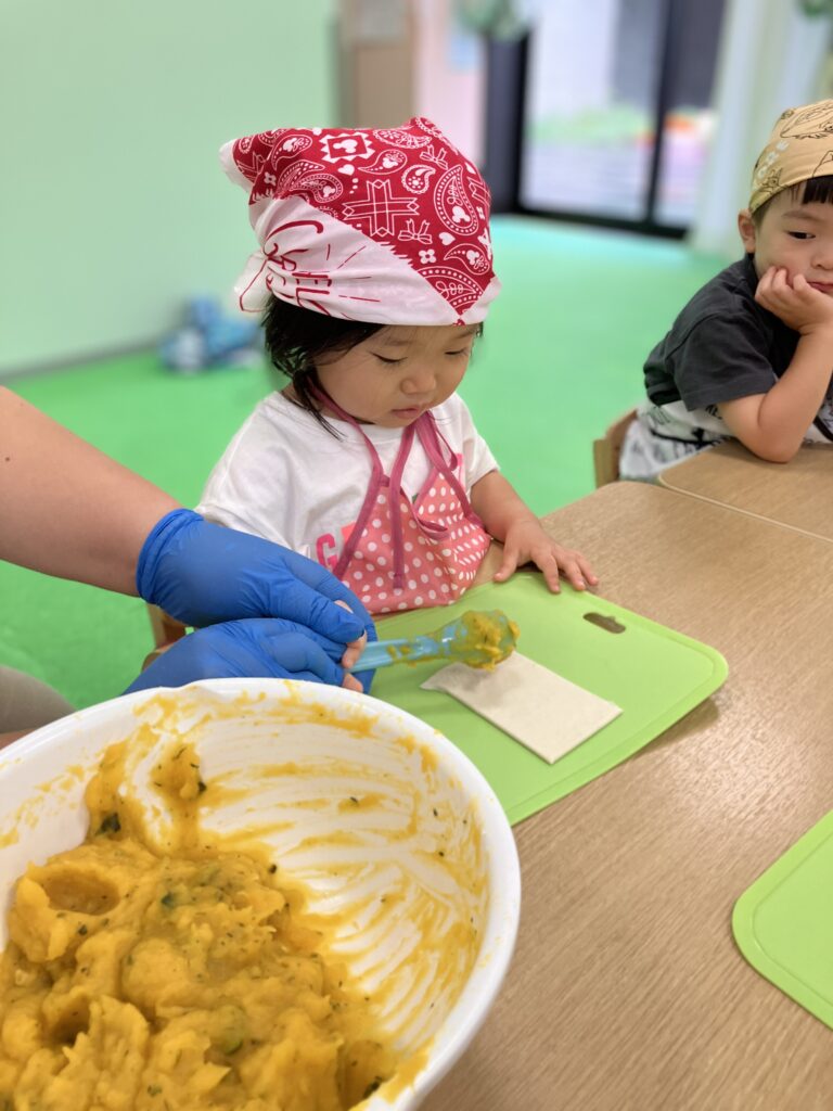 かぼちゃペーストをひよこ組さんにお味見してもらいました✨