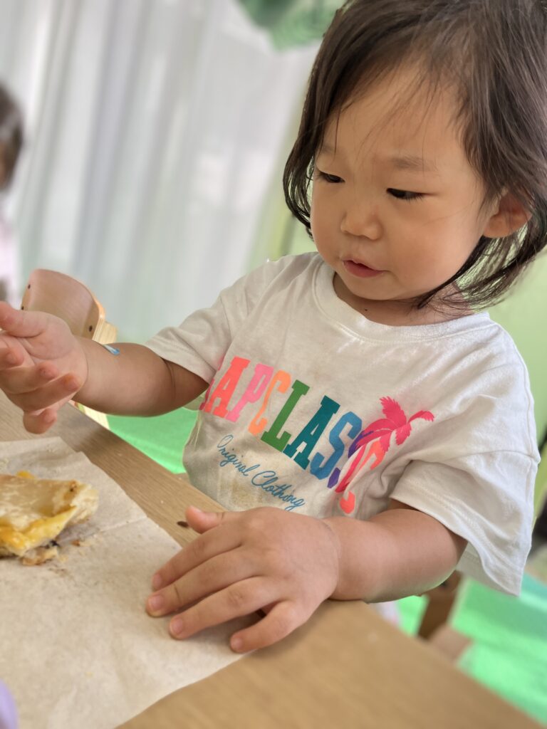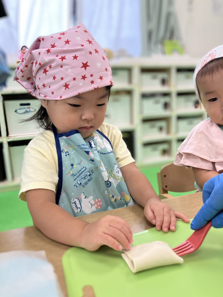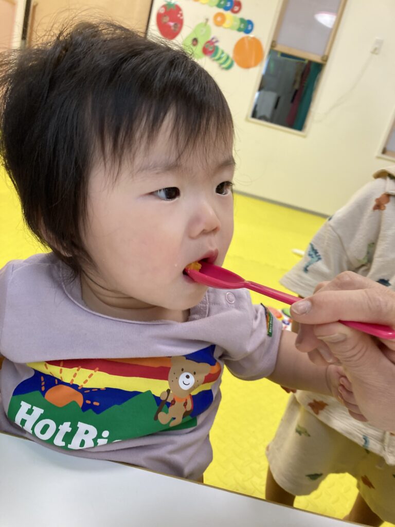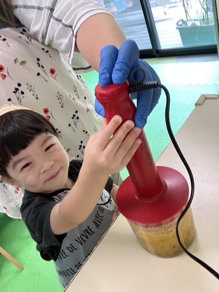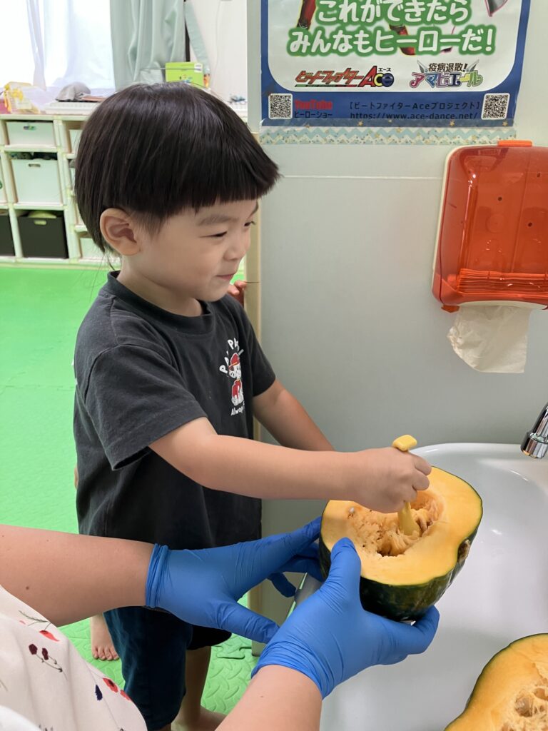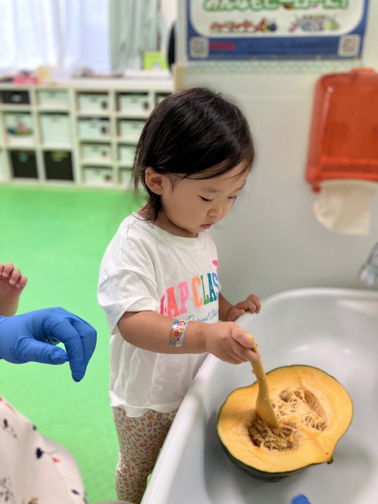 かぼちゃペーストをひよこ組さんにお味見してもらいました✨