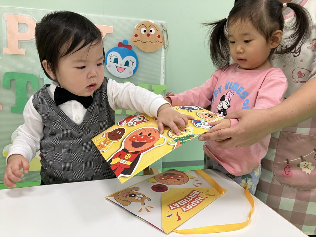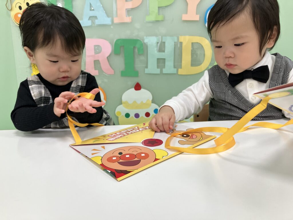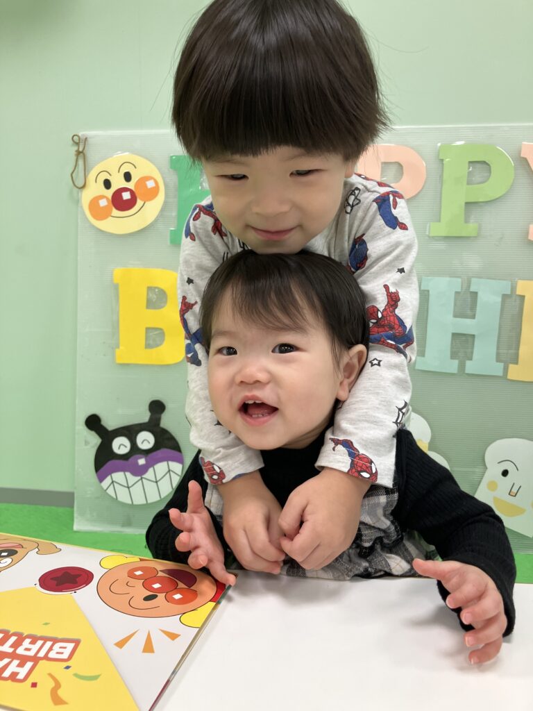 本日は今月1歳のお誕生日を迎えたKくんとMちゃんのお祝いをしました👏✨