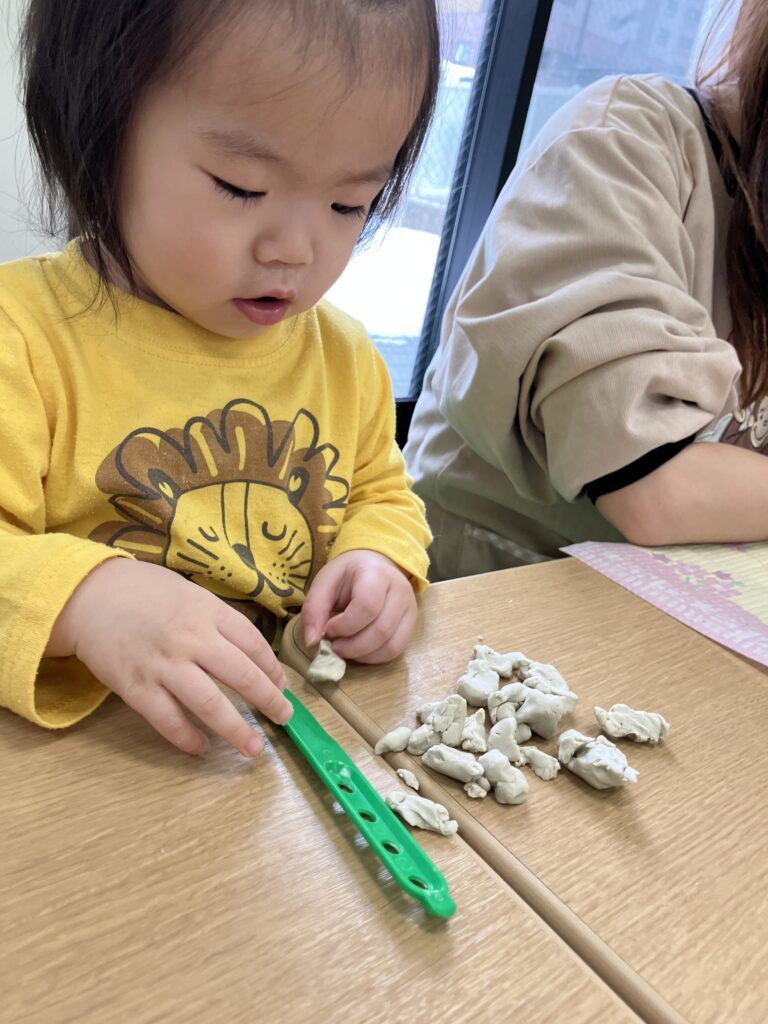 今日は粘土遊びやかけっこ、椅子取りゲームなどいろんな遊びを楽しみました😊