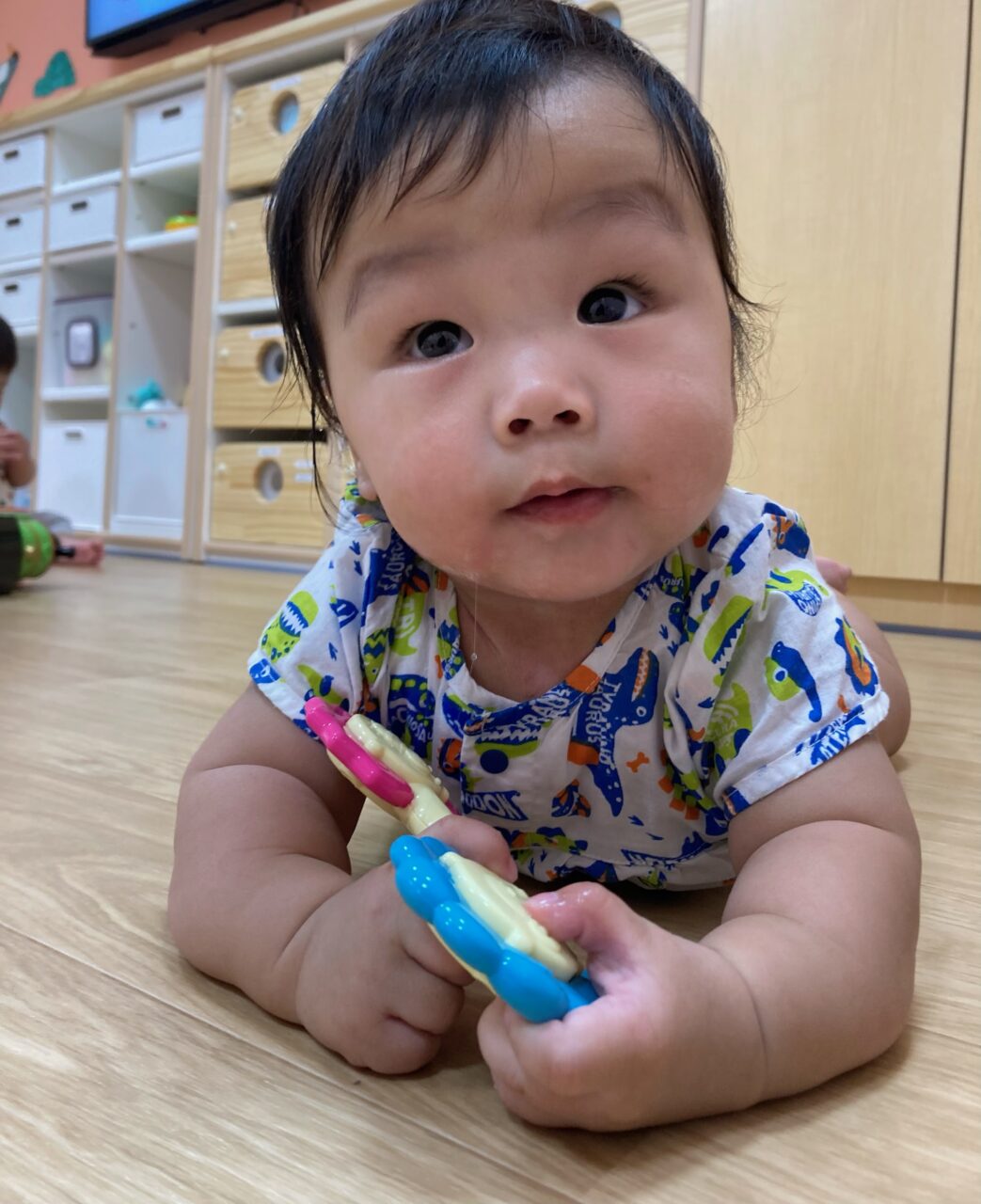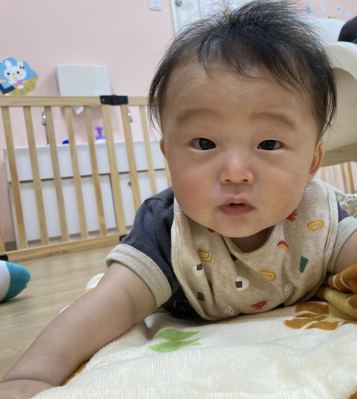 小さなほし組さんは、沐浴をしながら水に触れたり、お部屋の中で体をたくさん動かしています♫