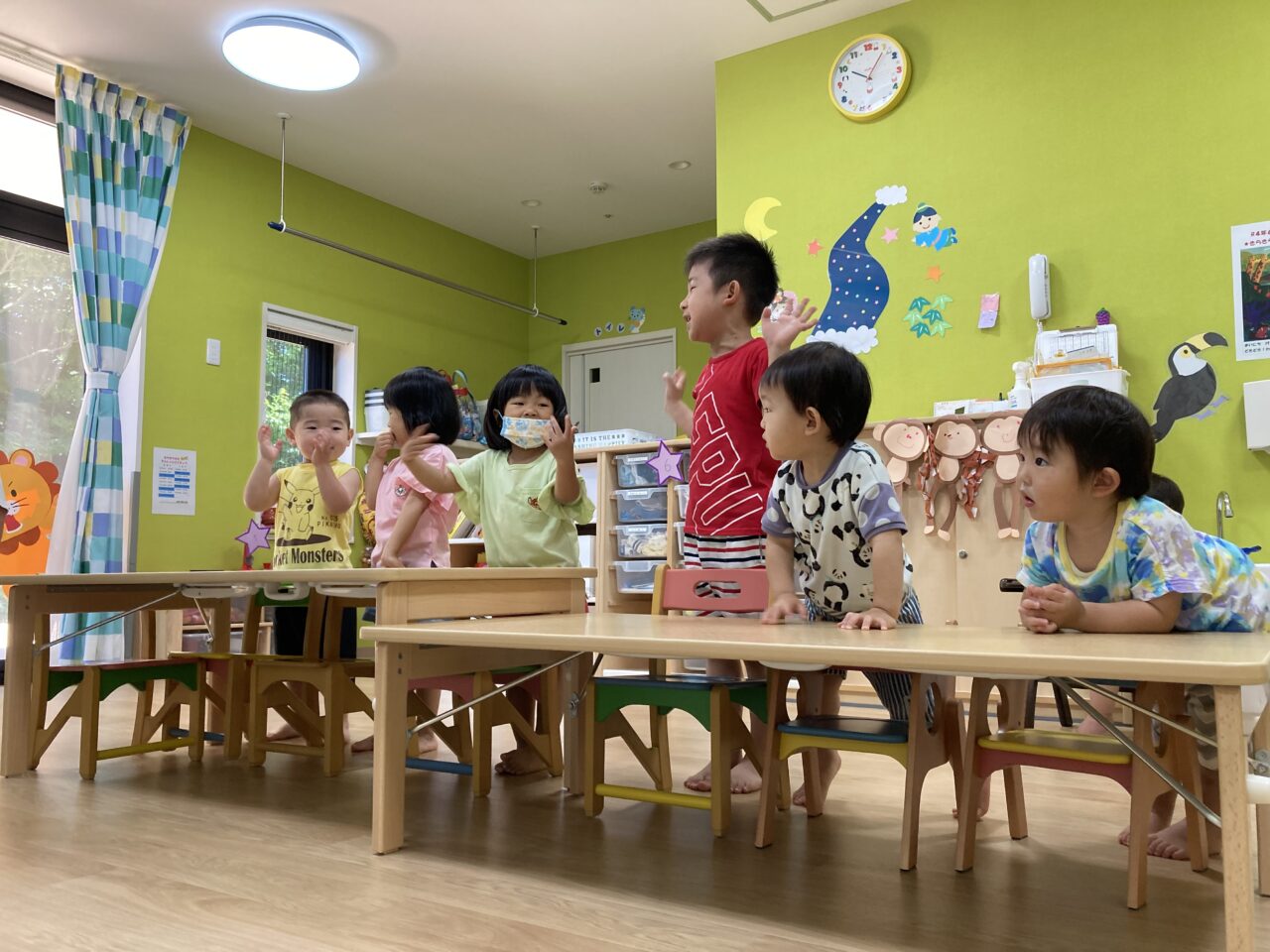 七夕集会ではたなばたさまの絵本を見たり元気に歌を