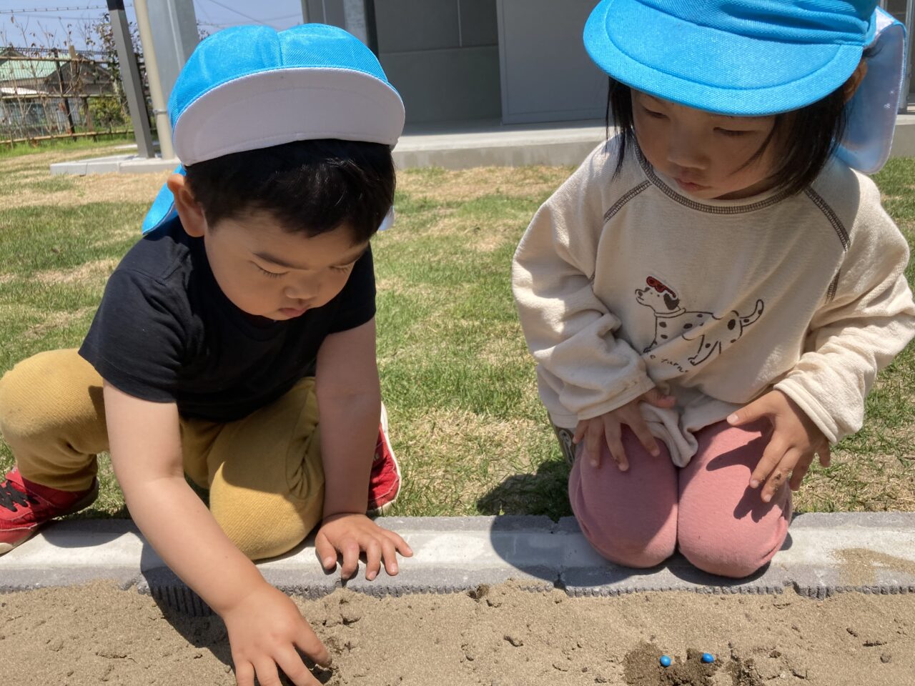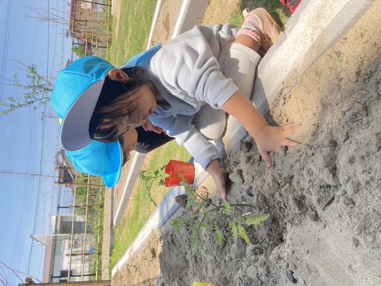 自分達で植えた苗、外遊びに行くたびに様子が気になって観察している子どもたちです😀✨