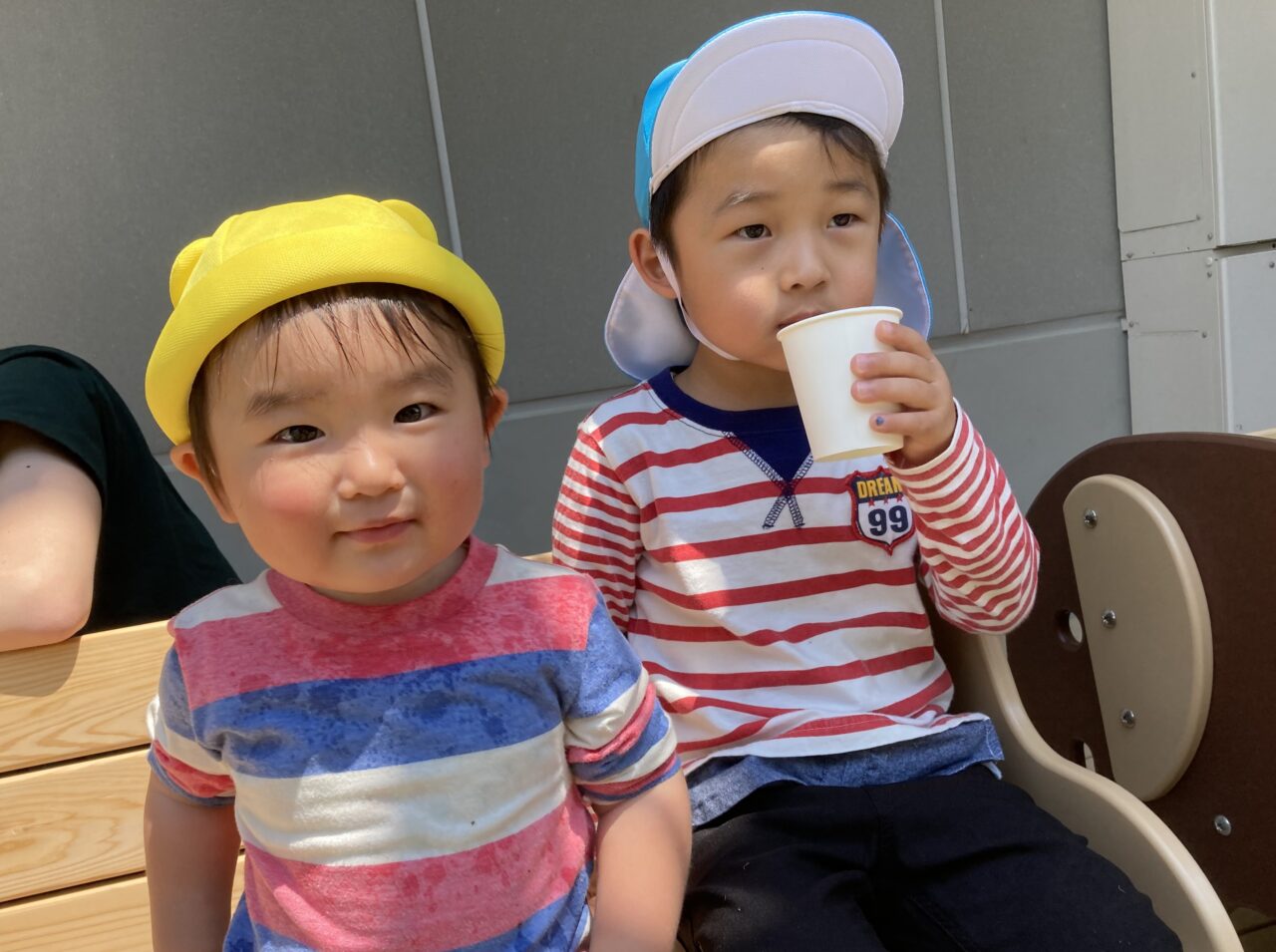 たくさんお仕事を頑張ってくれた子どもたち?頑張った後のぶどうジュースは最高だね?✨それでもまだまだ元気な子どもたちはその後もお外遊びを楽しんでおりました☘️☘️