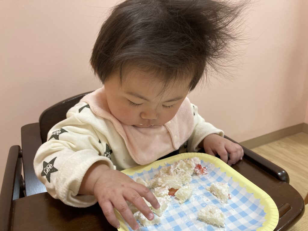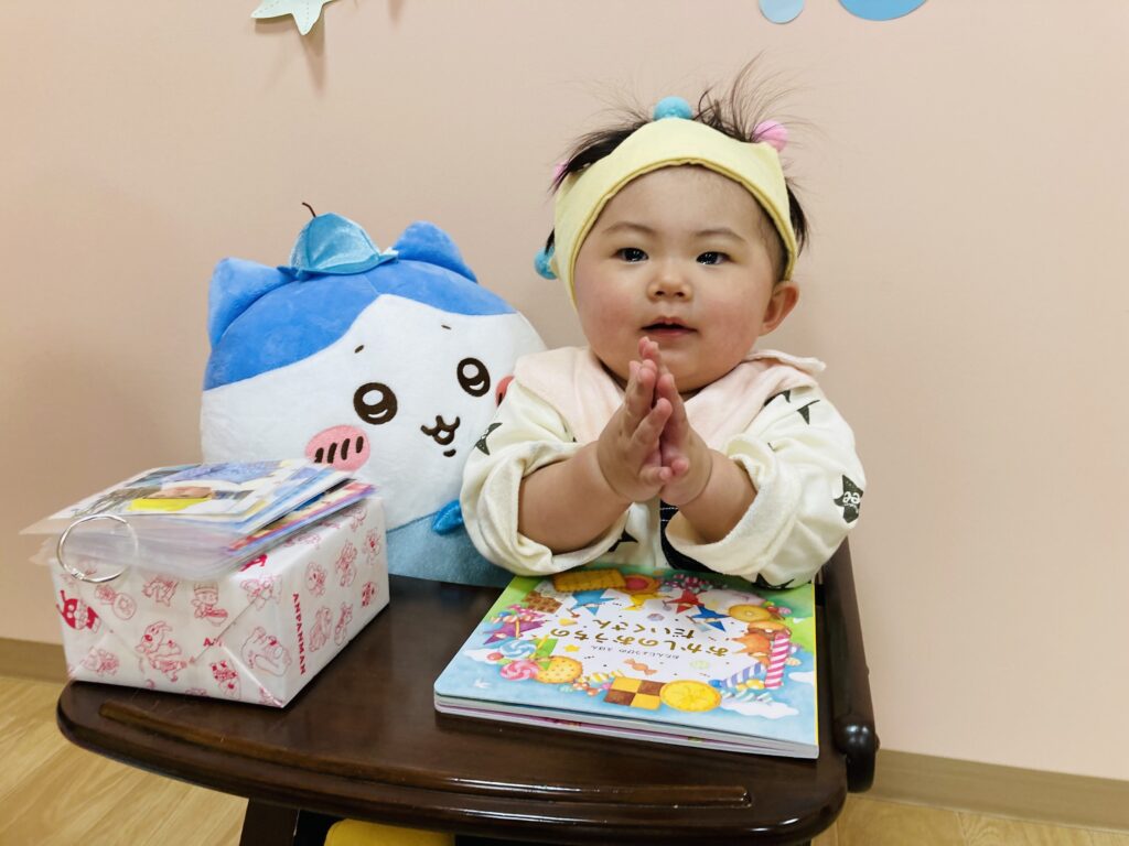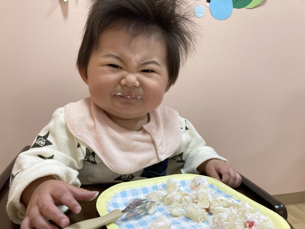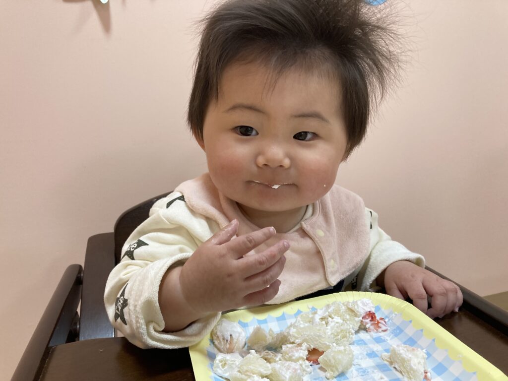 初めてのお誕生会に少し緊張ぎみのMちゃん😆