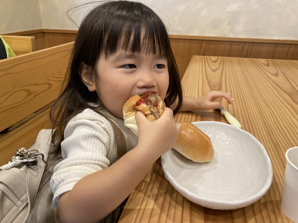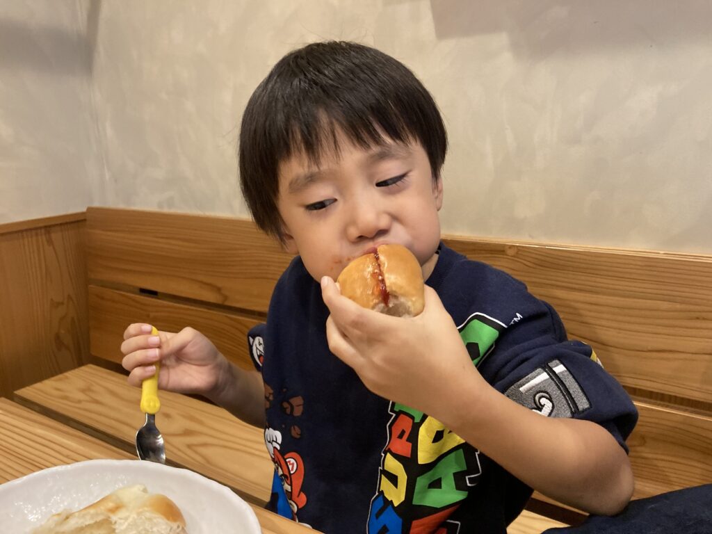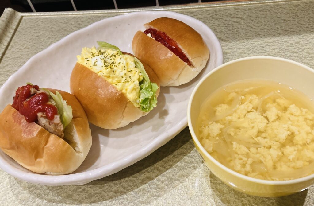 パンの中身は、卵・ハンバーグ・いちごジャム!