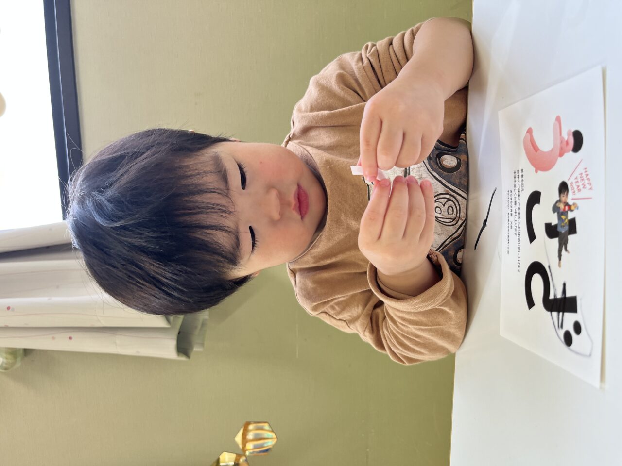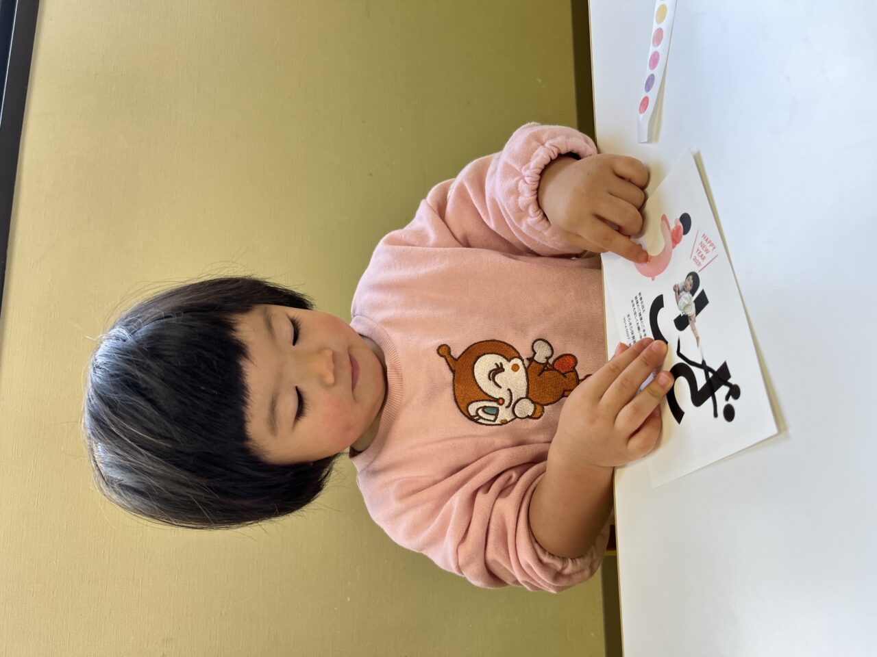 シールを貼って、うさぎの「ぎ」をペン書きました?