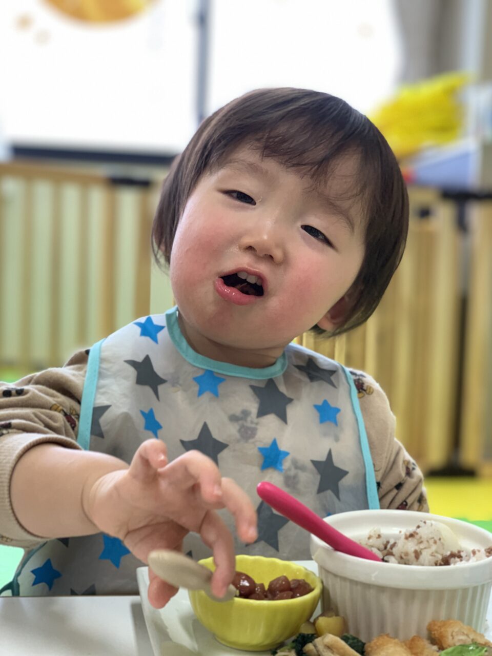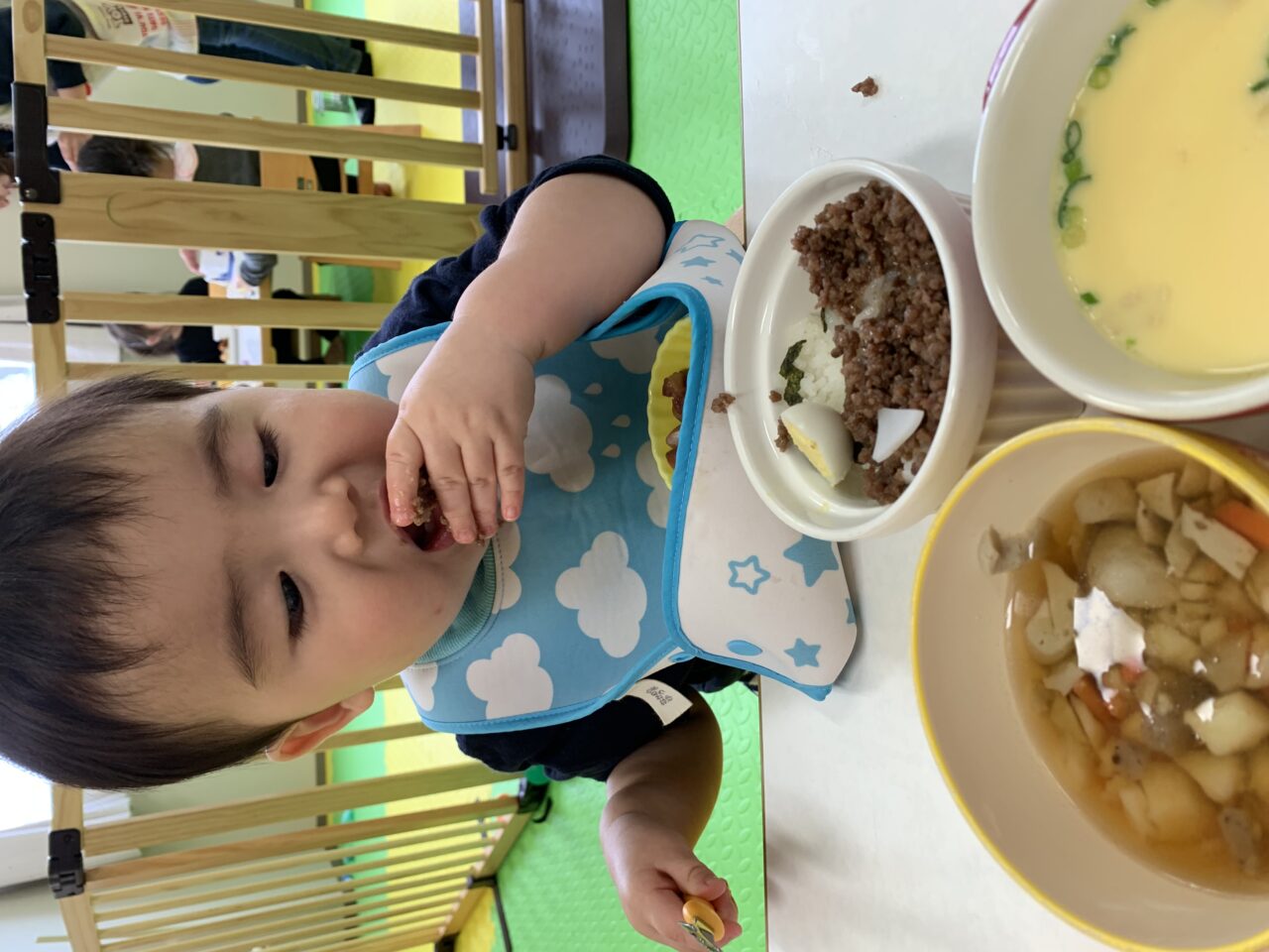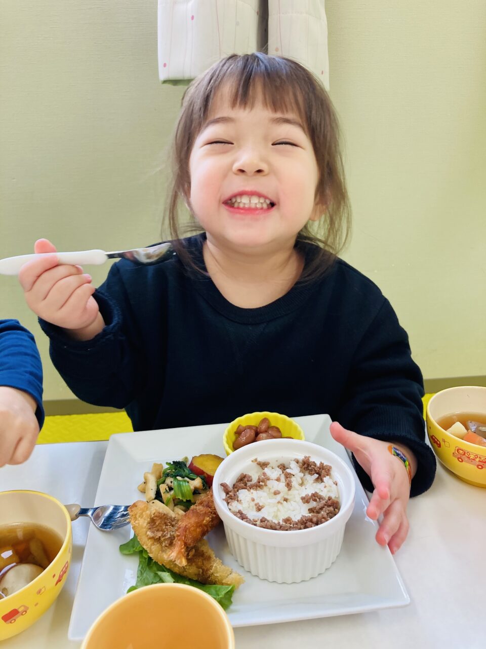今回は、かわいい鬼のそぼろご飯を作ってもらいました❤️