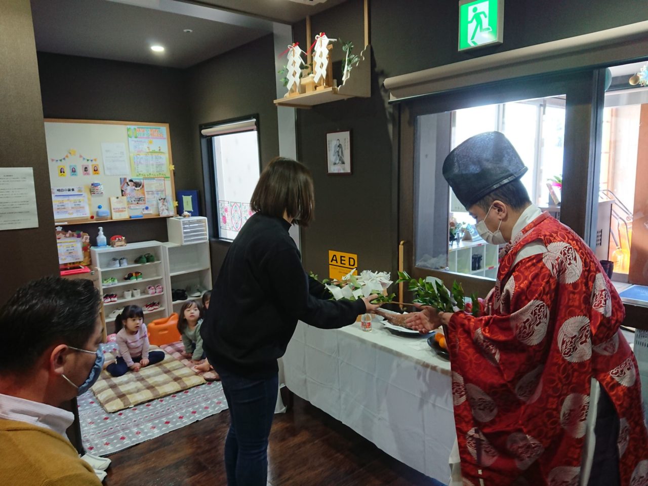 もう1つは分からず、神主さんから「キツネさんだよ?頑張って切ったんだけど分からなかったか〜」と言われ、「え!手作りなんですか?」と驚く保育士達でした?