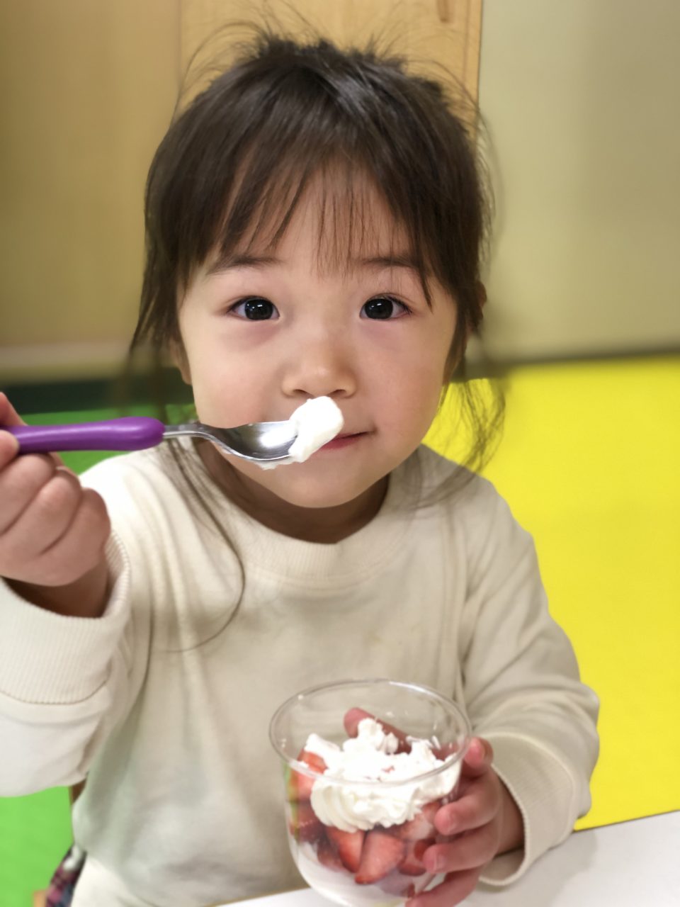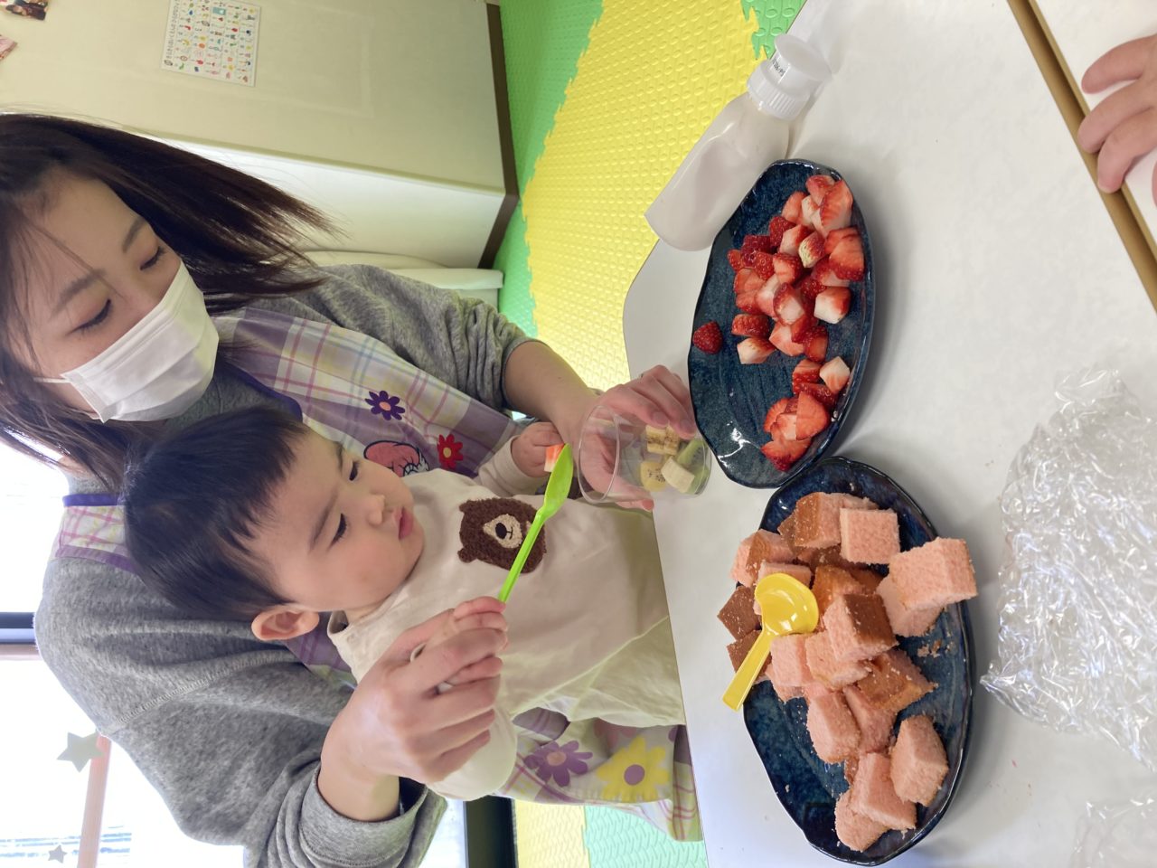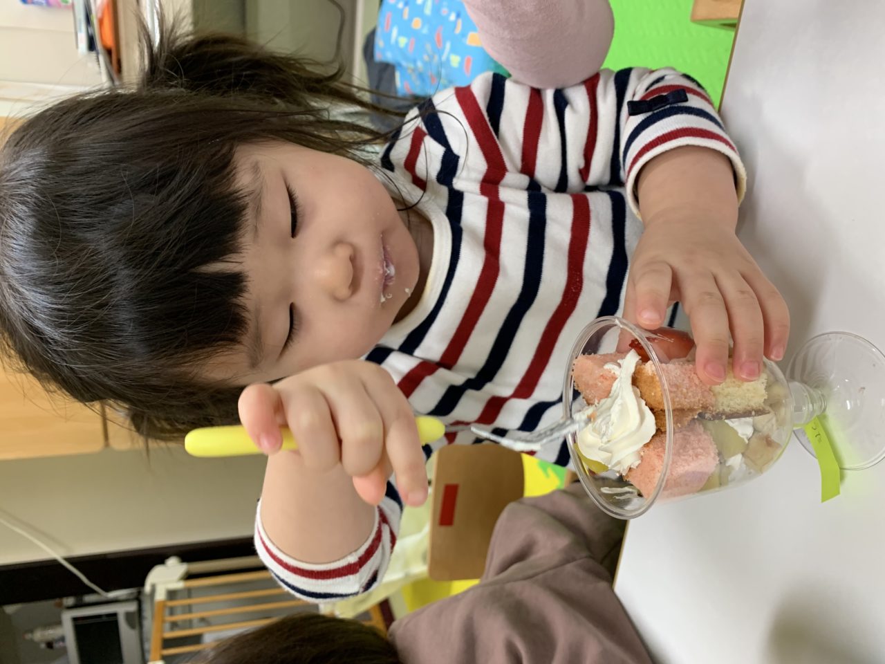 今日はクリスマスいうことで、手作りクリスマスパフェを子ども達と一緒に作りました???