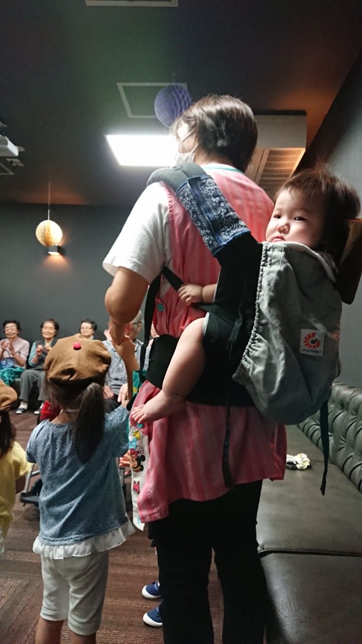 少しずつ、子ども達も緊張がほぐれ、ピアノに合わせて振り付きで歌ったり、小さいお友達も体を揺らしたりする姿が見られました?