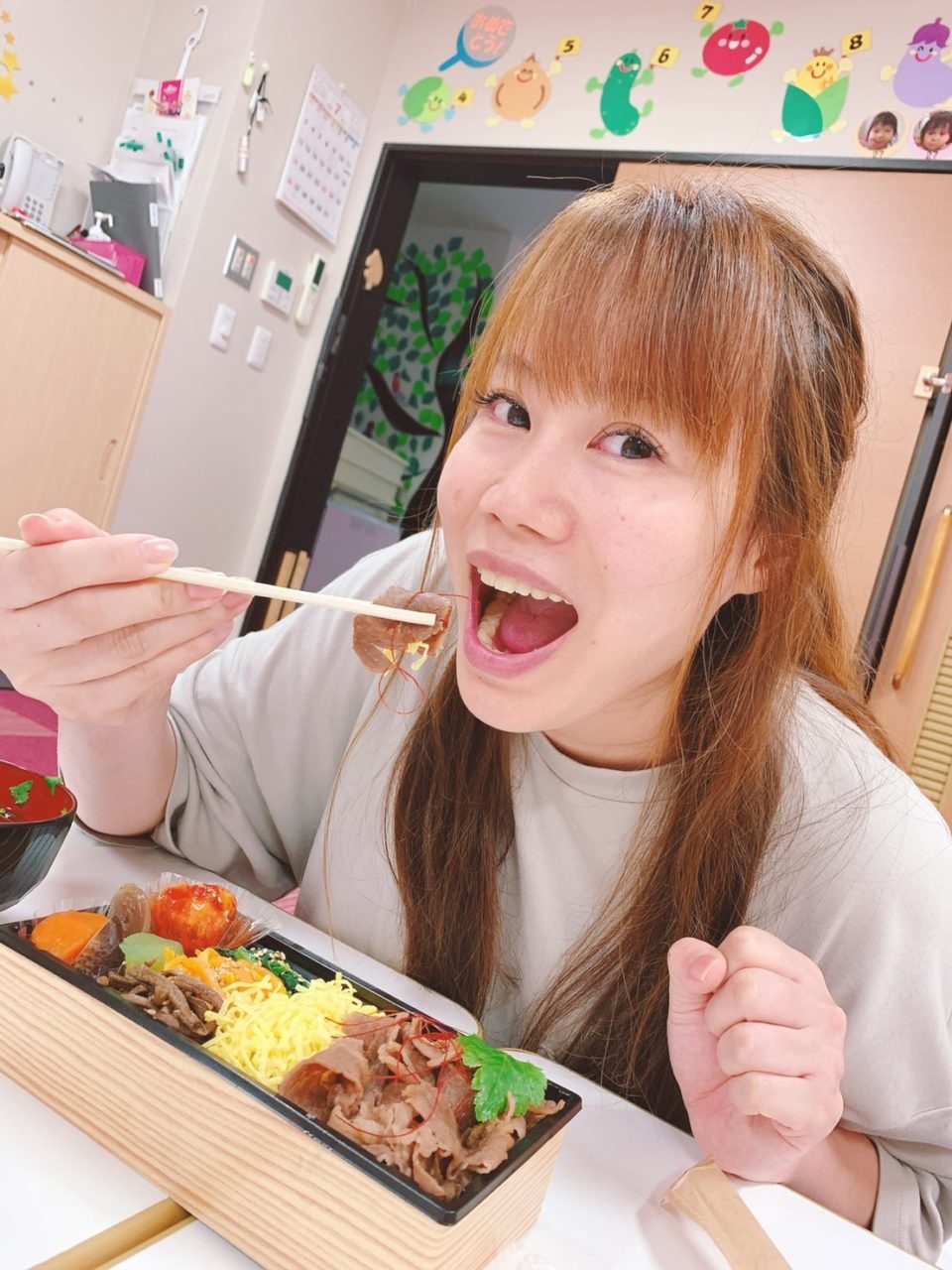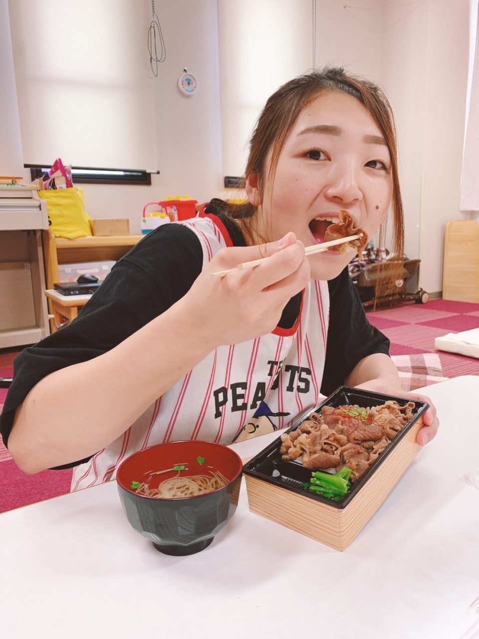 美味しいお肉を食べ、保育士みんな自然と笑顔になっていました?