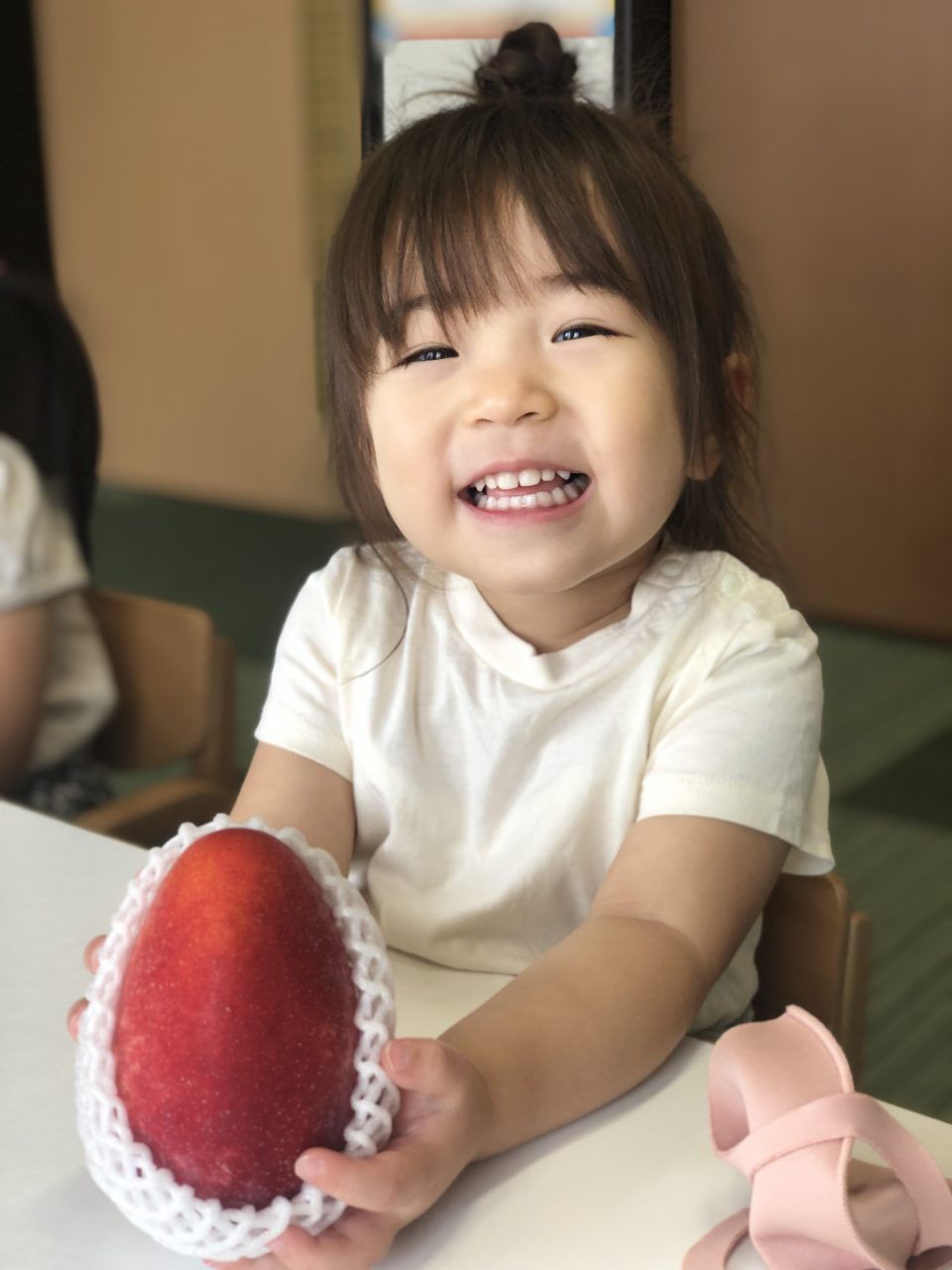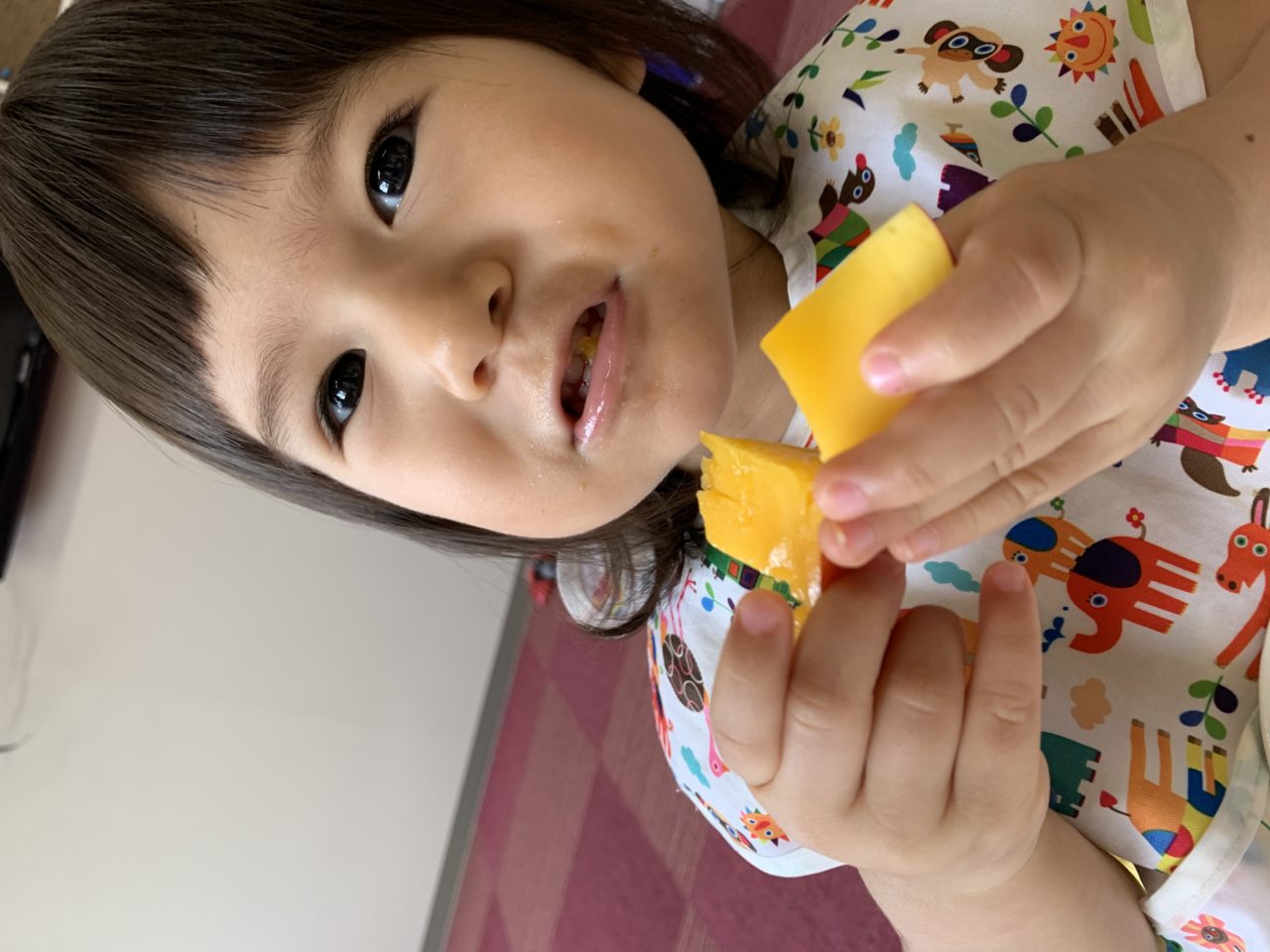 きらきらっこも、マンゴーを手にしてこの笑顔❤️
