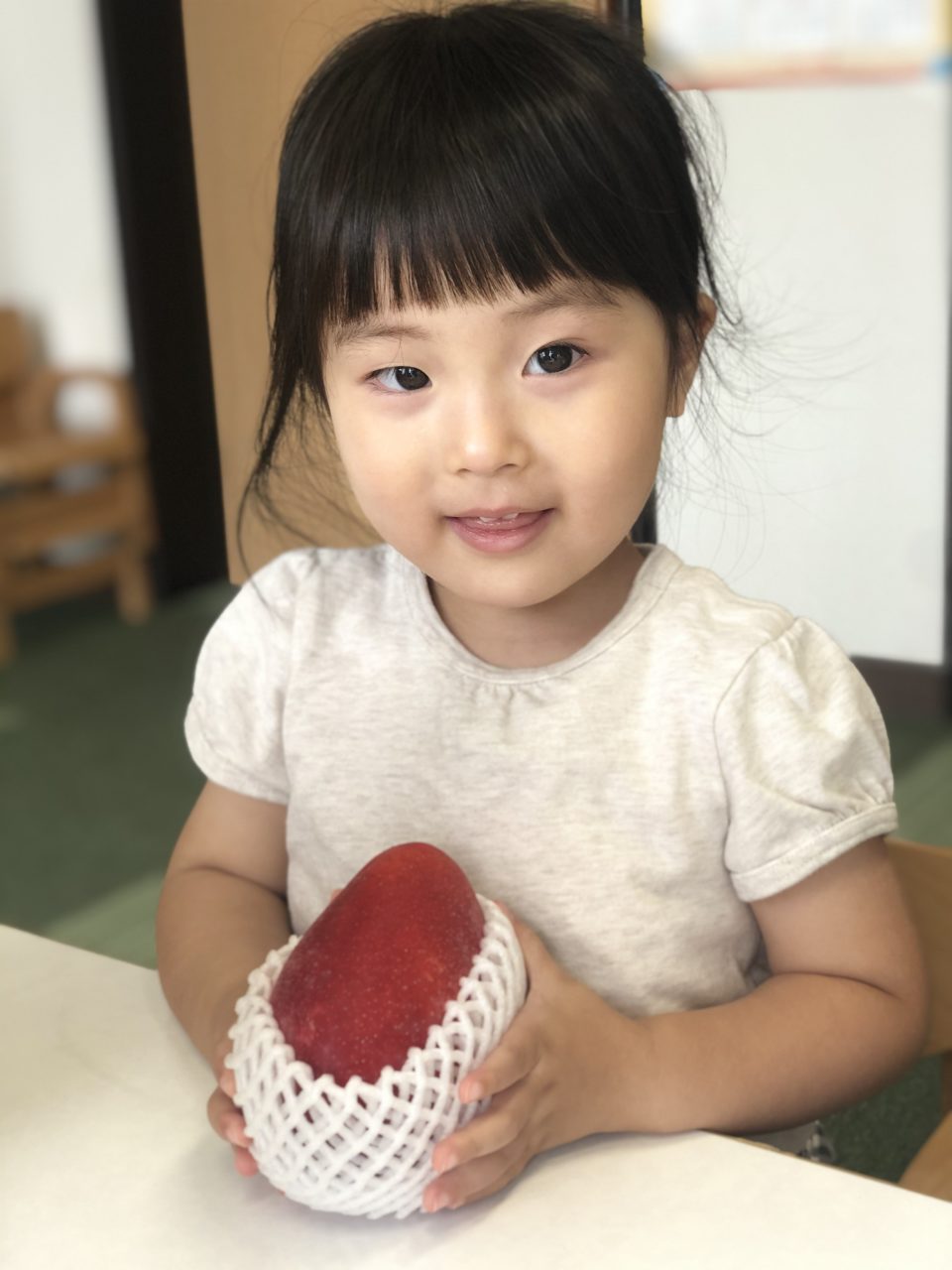 切っていない状態のマンゴーを見るのが初めての子もたくさんいたので、新鮮でした😃🌷