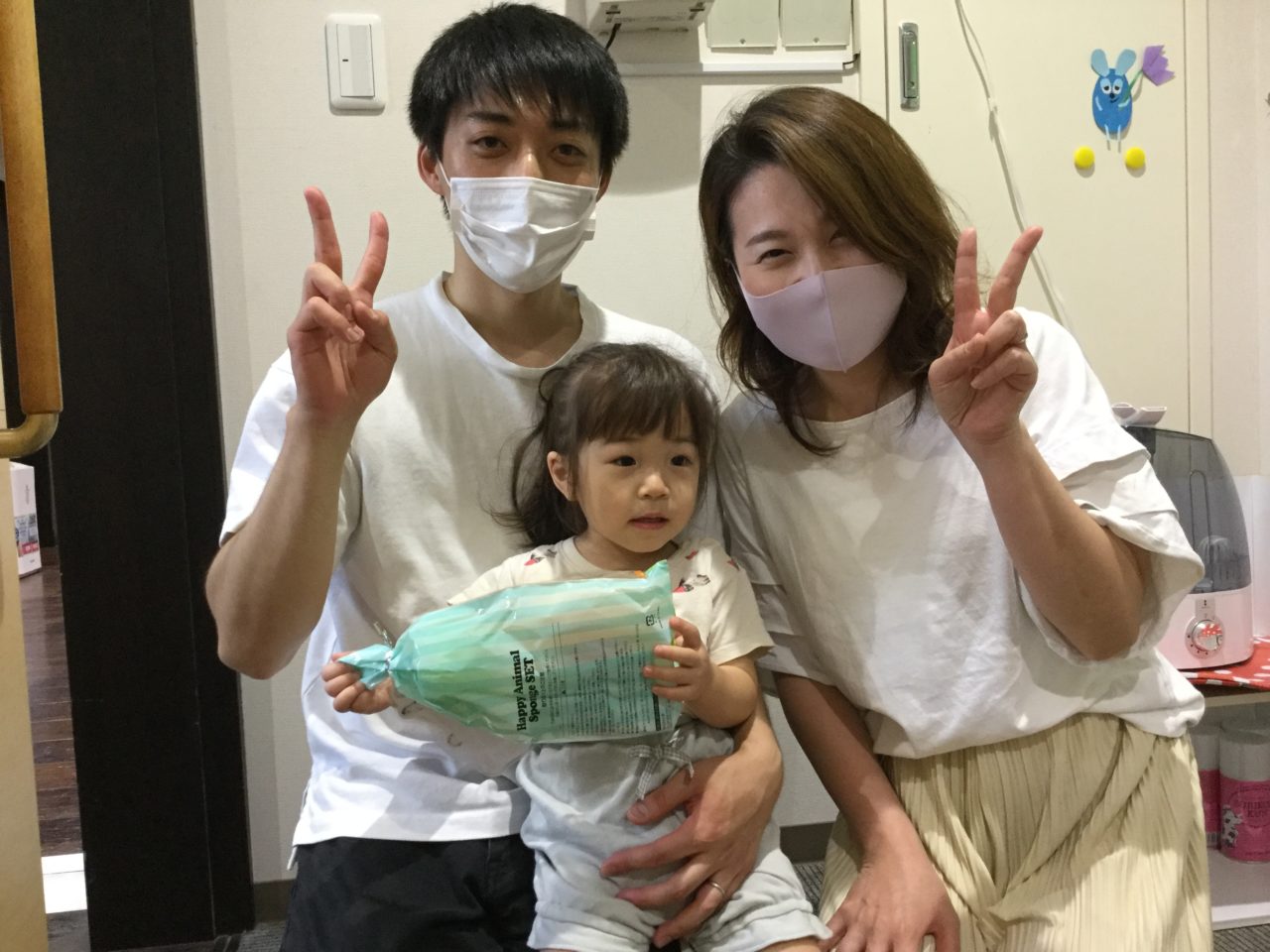 このスポンジを使ってお父さんと一緒にお皿洗いのお手伝いが出来ますね?