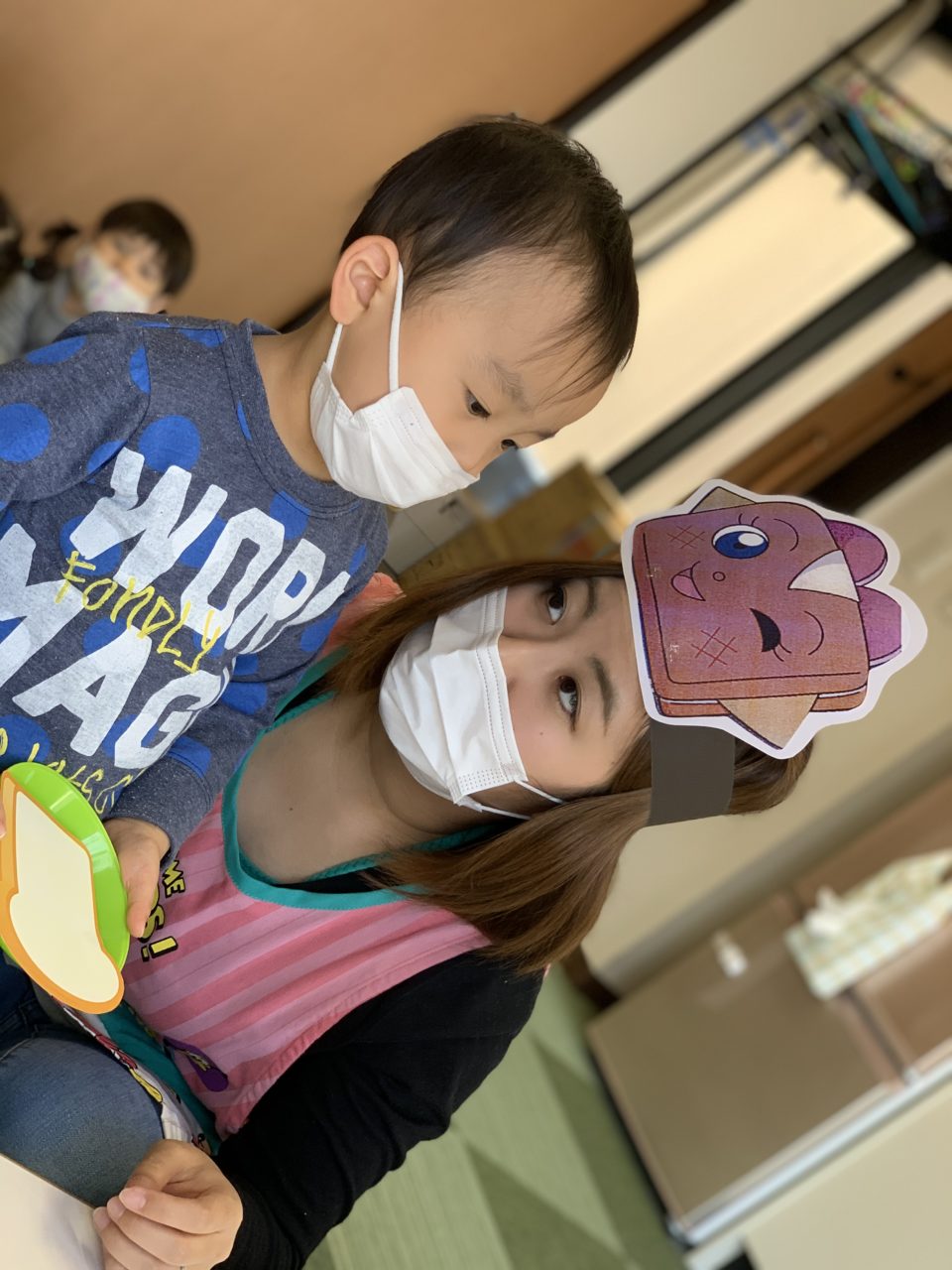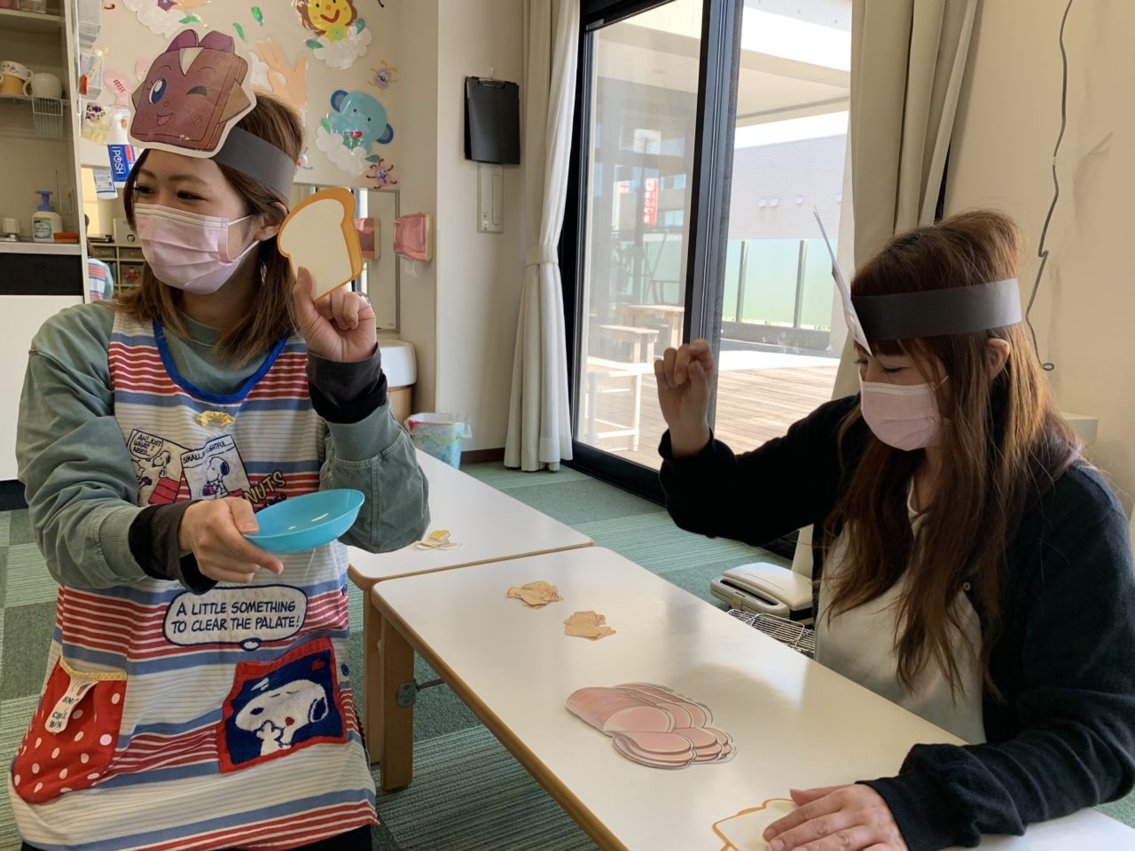 ちなみに楽しんでもらいたいという思いを込めて、保育士はホットサンドちゃんに変身中です??