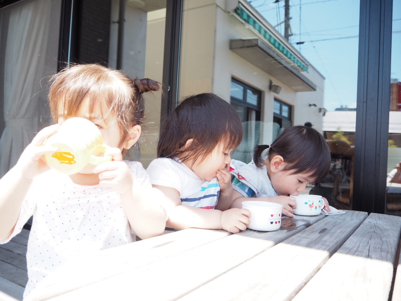 選び終わったらテラスでたくさん遊んでお腹を減らしているのかな??