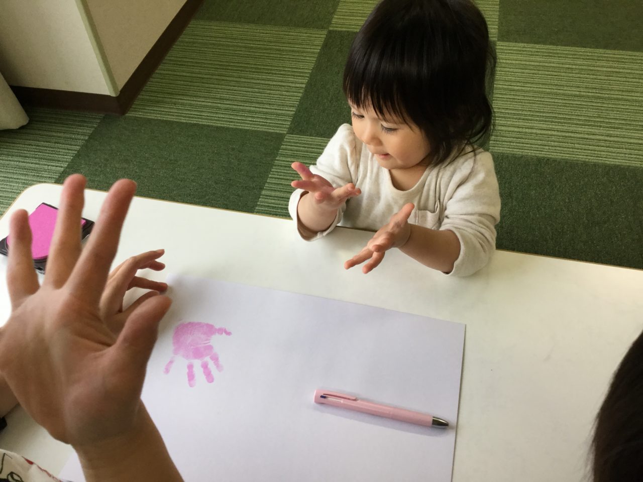 以前は、手型をとることが苦手で出来なかったお友達もいましたが、今では積極的に取り組んでいて大得意になりました?