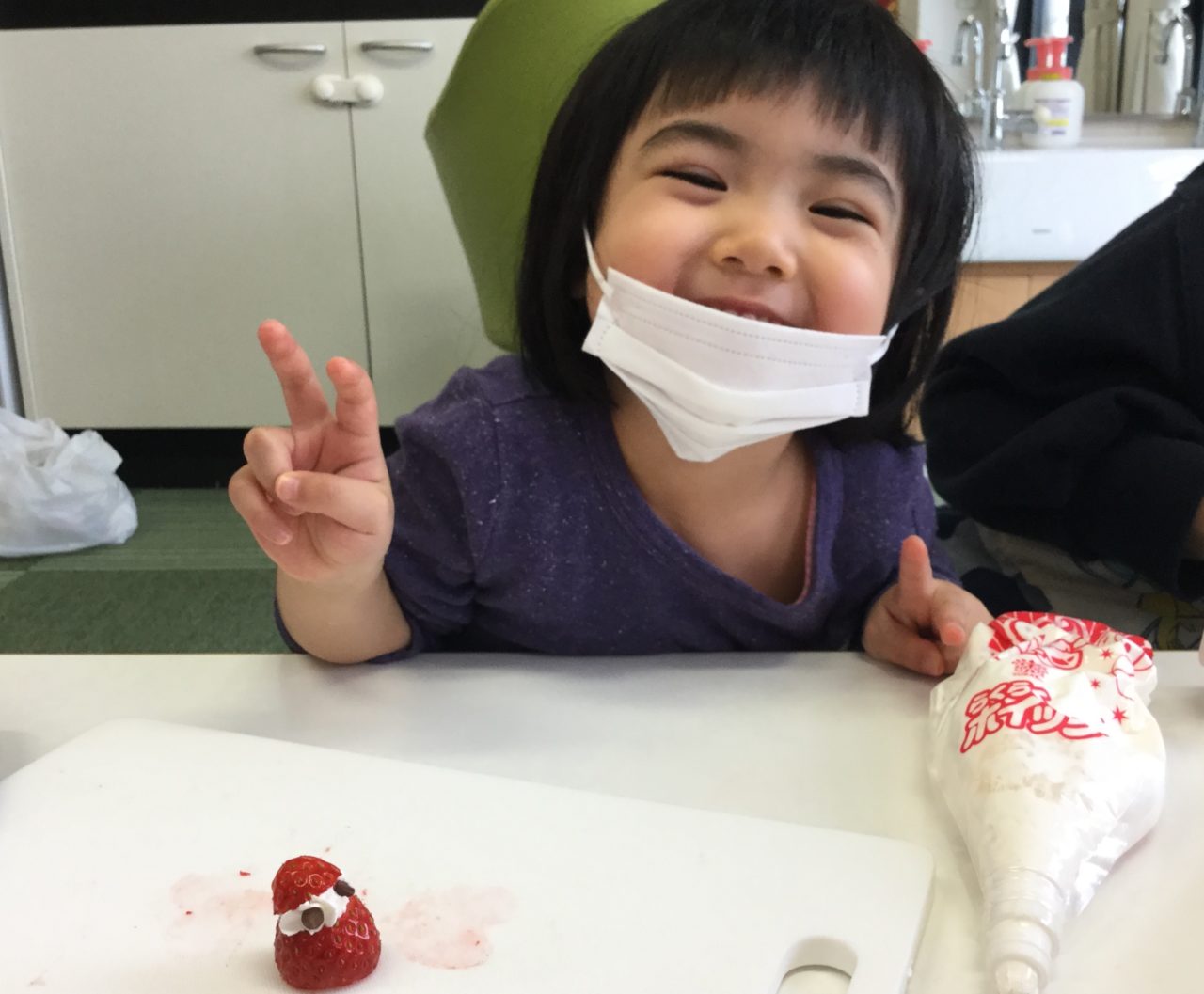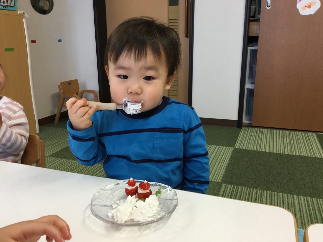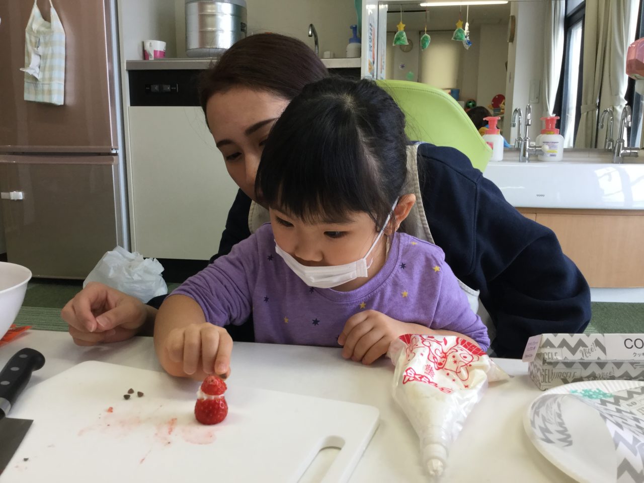 保育園に戻ってからは、いちごサンタ作りをしました?