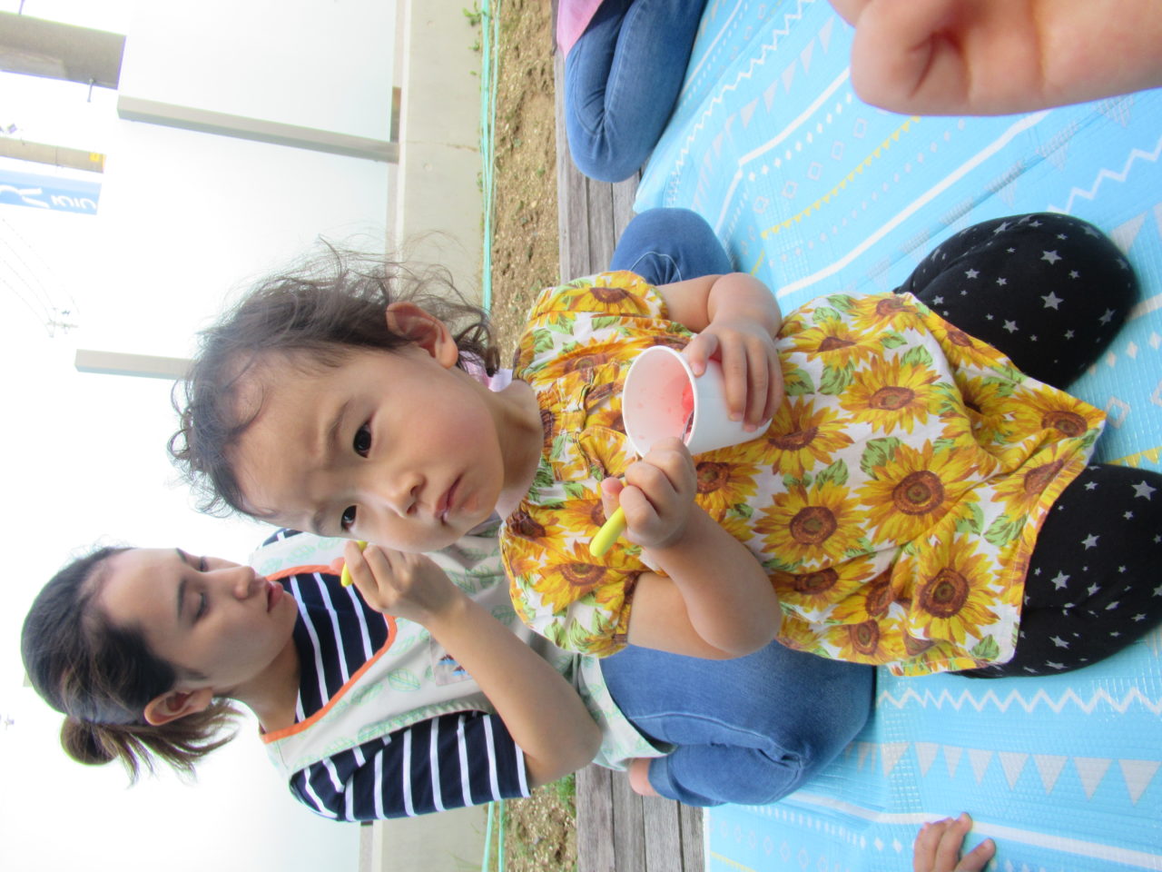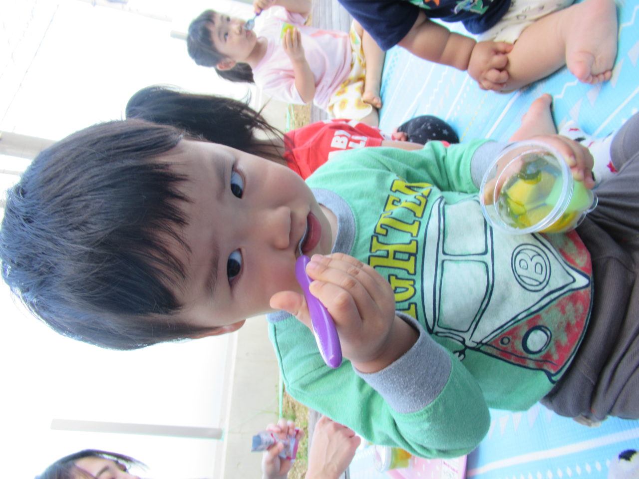 大きなスイカを切ってもらい、お昼寝中に冷やしていたゼリーと一緒にいただきました?