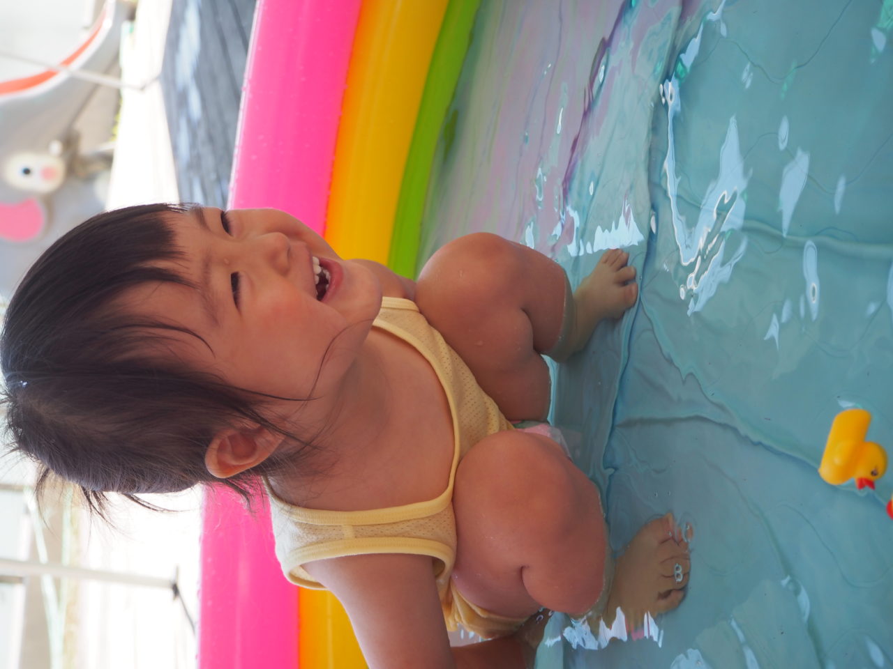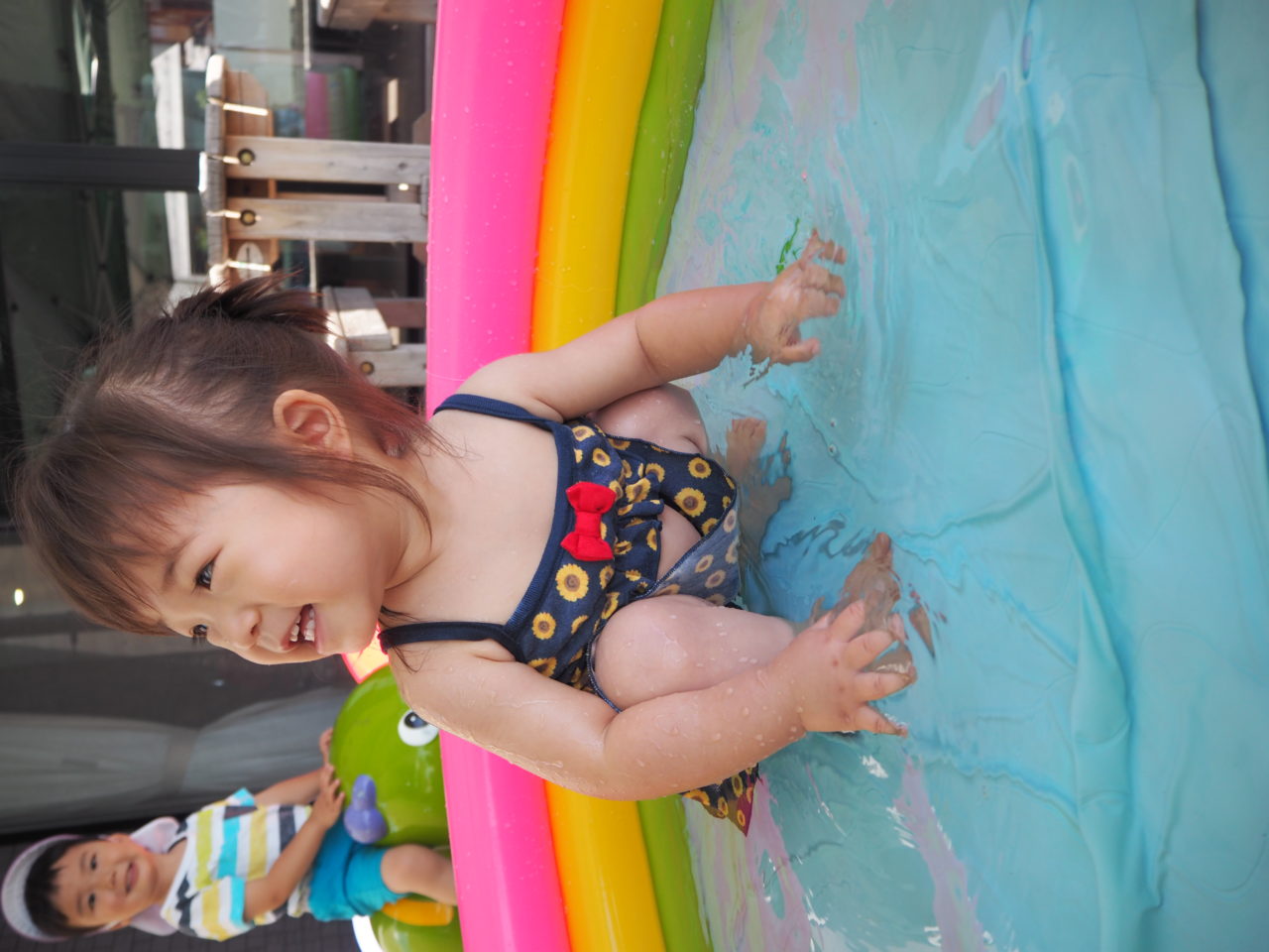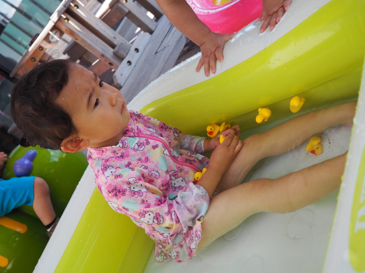 「お水冷たくて気持ちいい✨」とはしゃぐお友達?