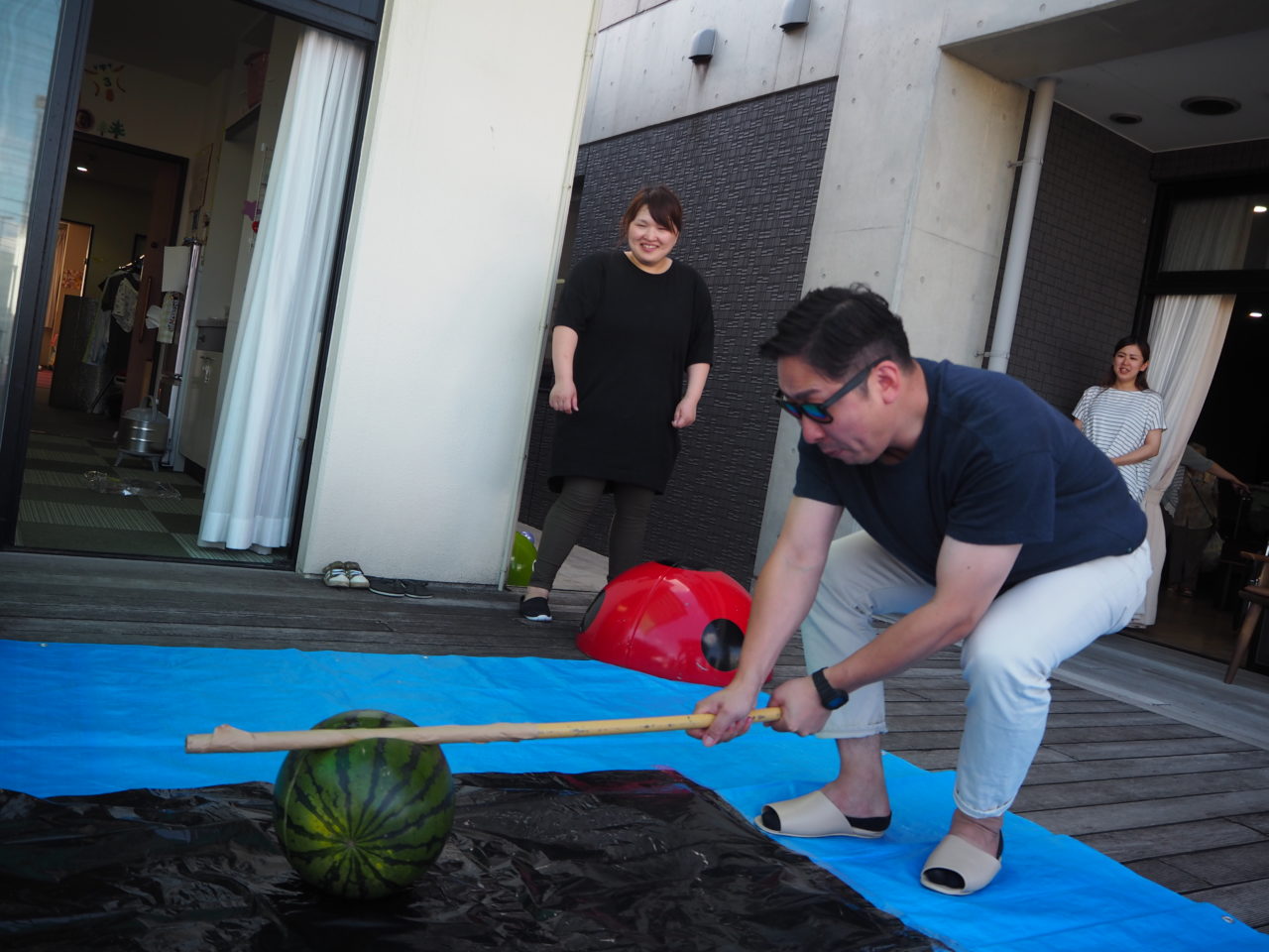 お昼寝の後はスイカ割りです?