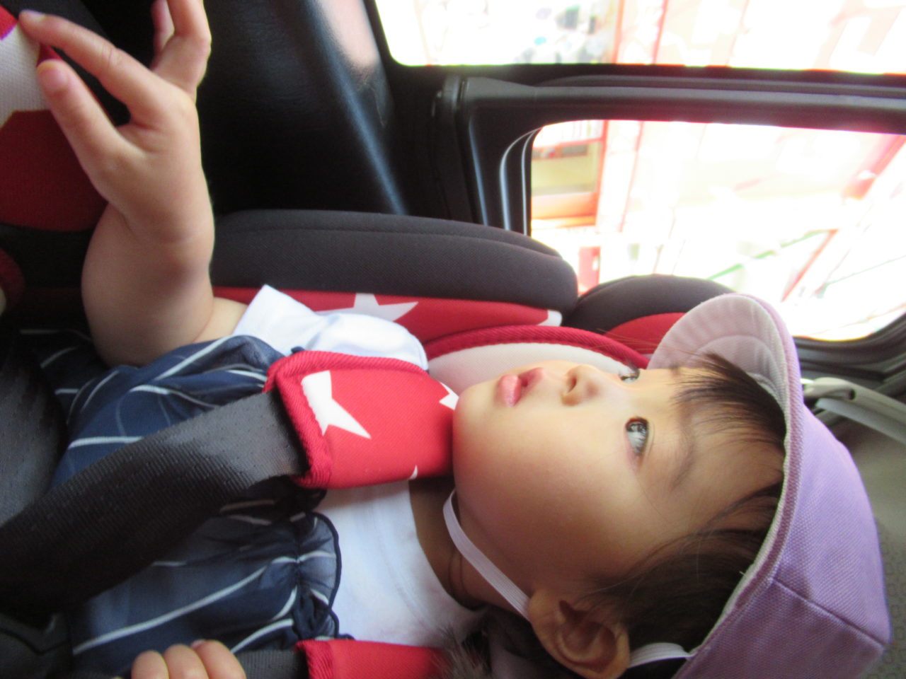 帰りのバスでは、たくさん遊んでつかれてしまったようでうとうとしているお友達もちらほら…でも保育園に戻るまで眠らずに頑張って起きていましたよ!