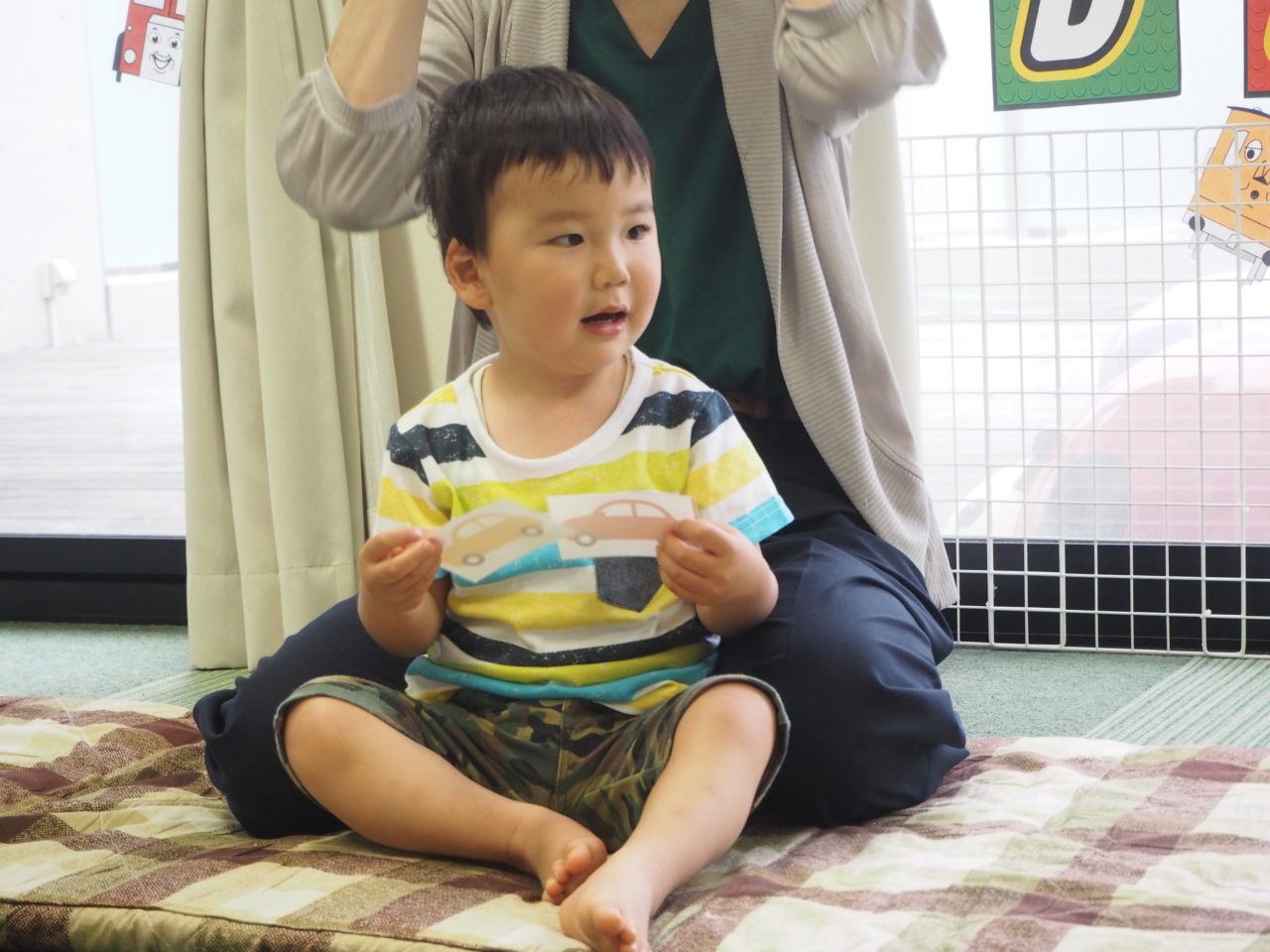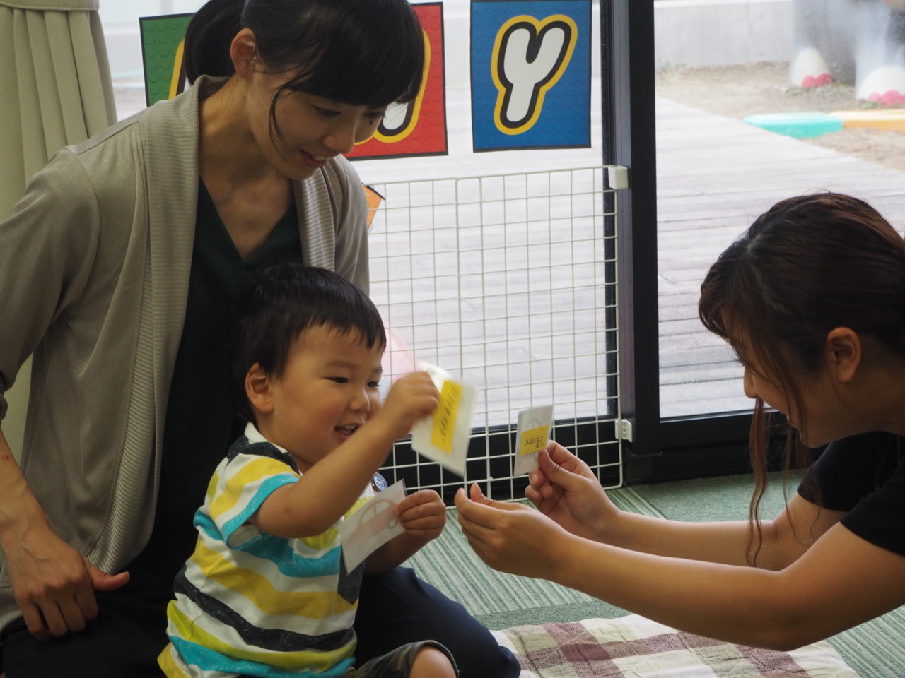 まずは、A君の大好きな車のカードを使って、質問タイムを行いました?