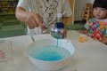 サイダーにブルーハワイのシロップを入れ、色を付けました!