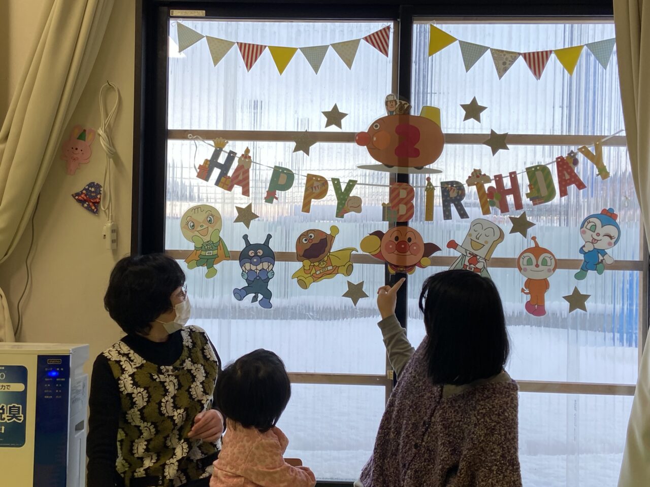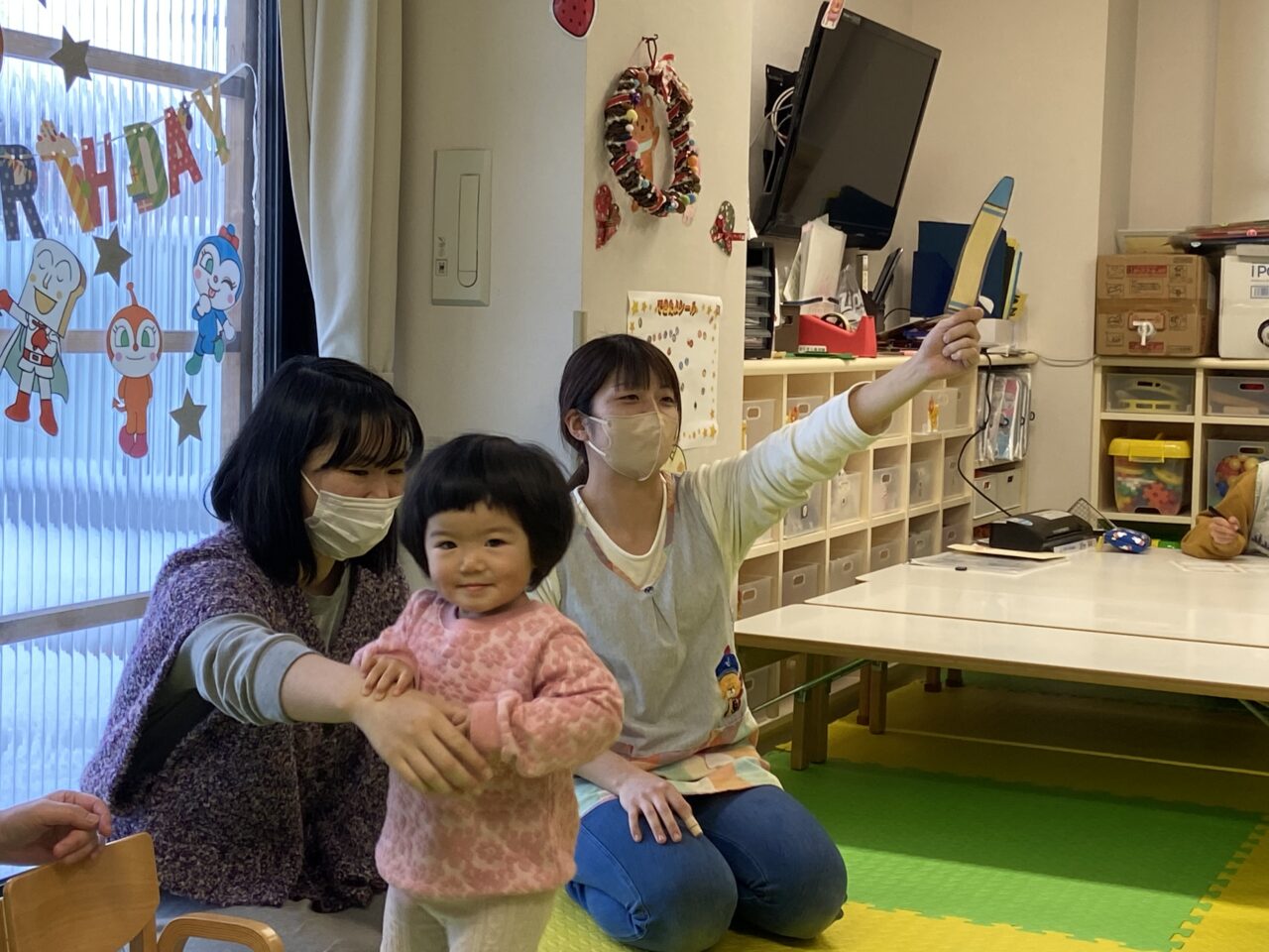 お友達を前に少し緊張気味のYちゃんでしたが、アンパンマンと仲間達を見つけると緊張もほぐれたようで笑顔になってくれました❣️