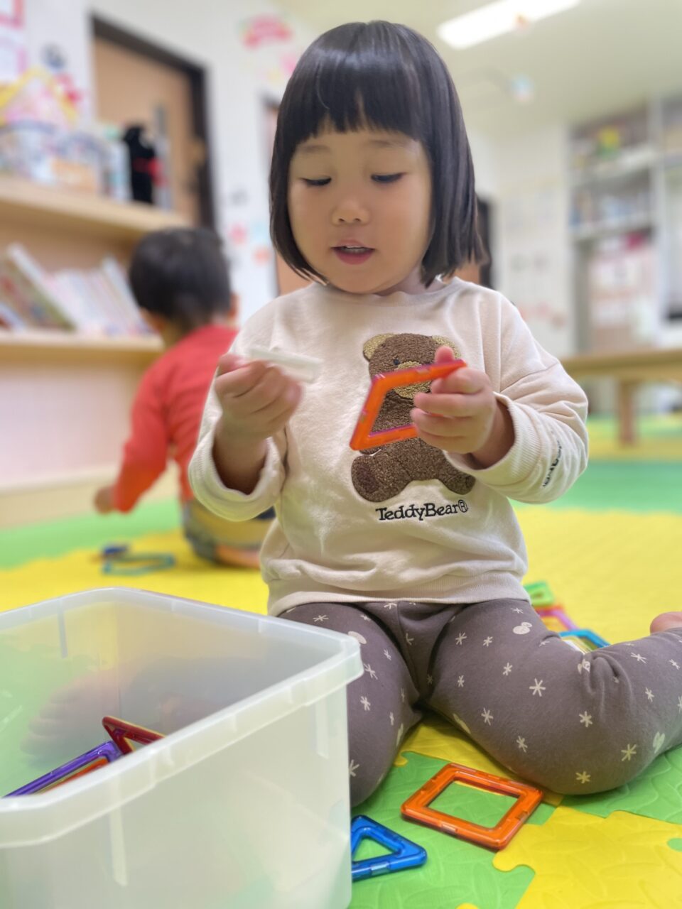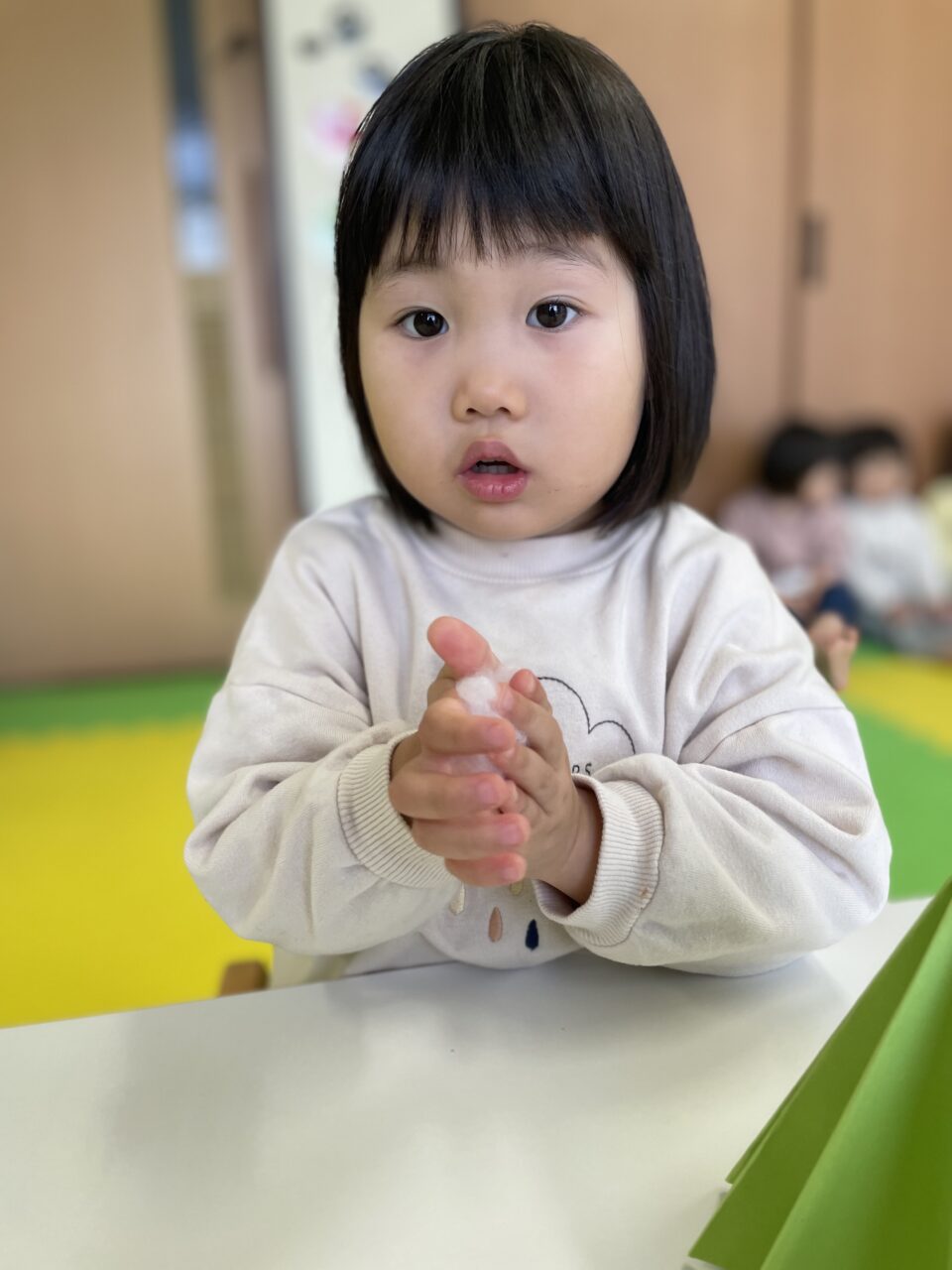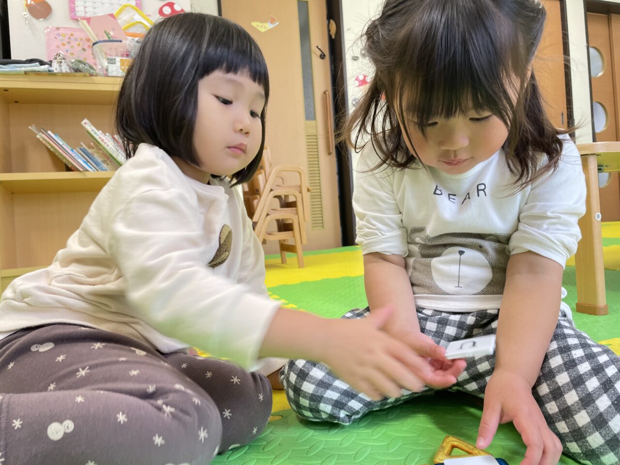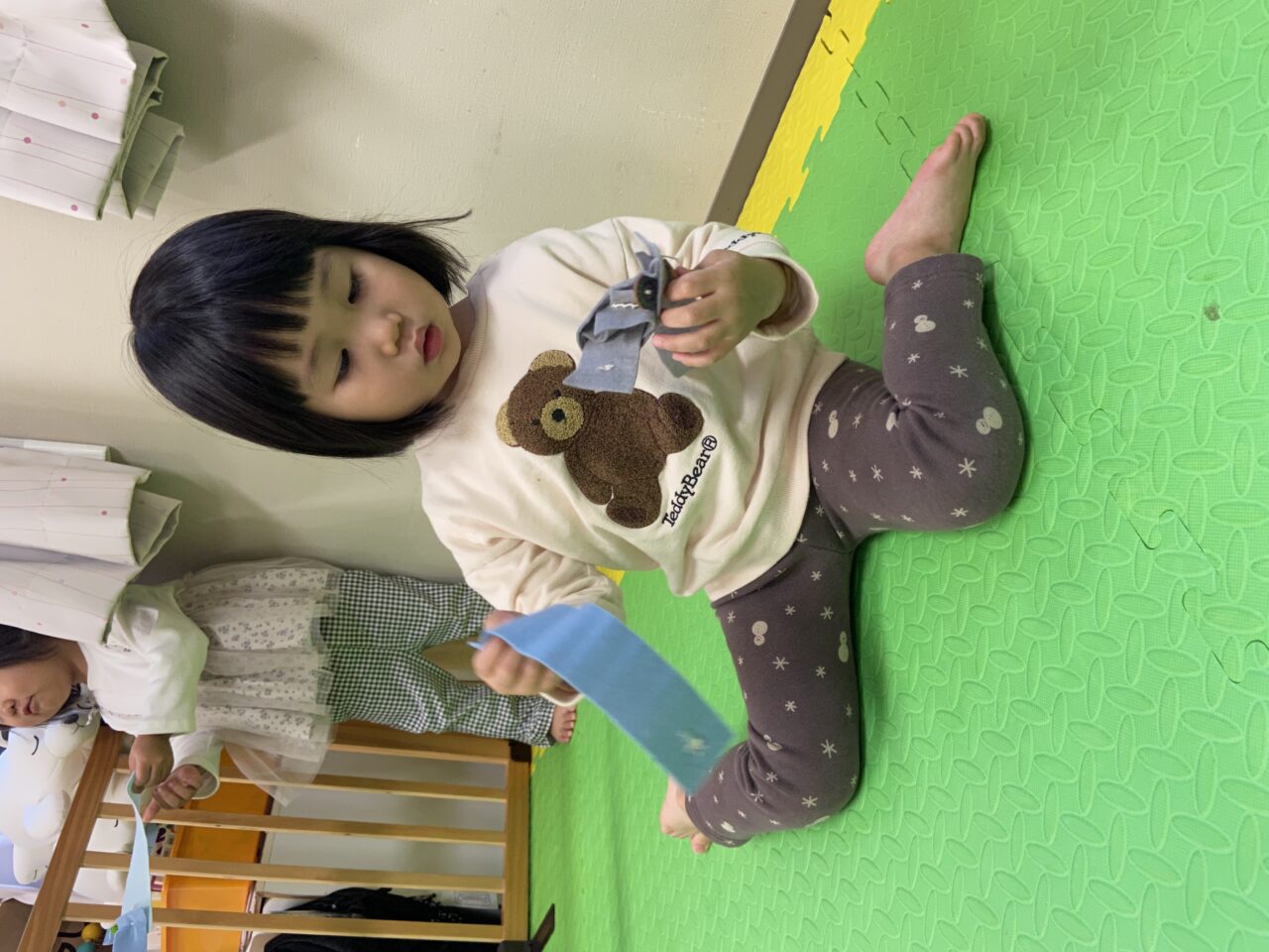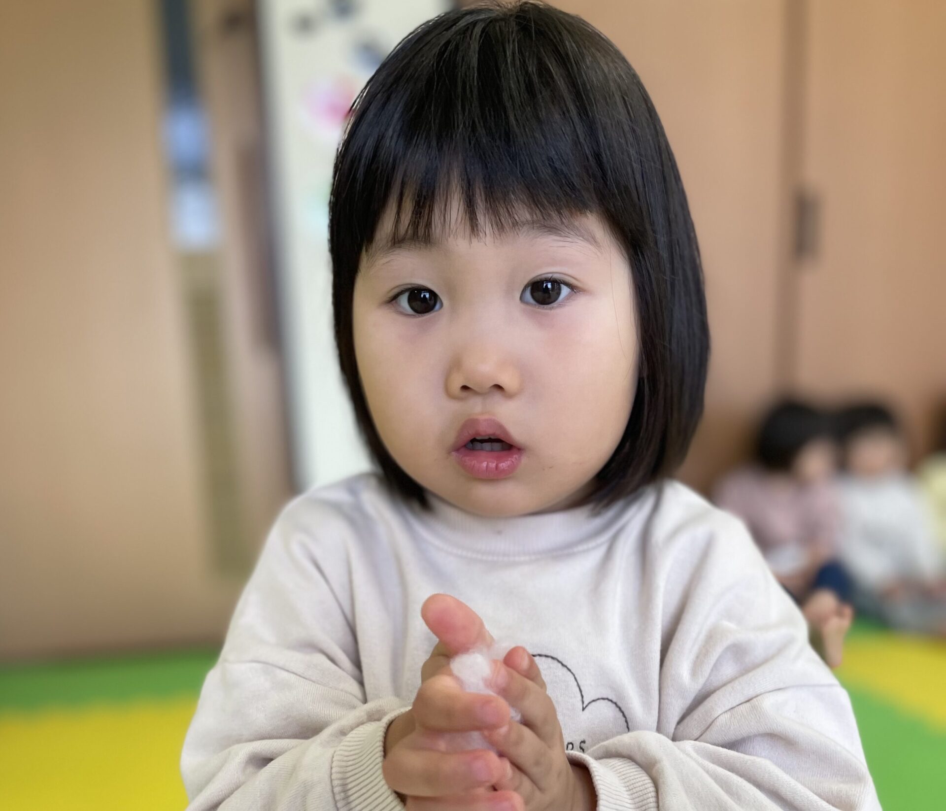 入園初日は、お母さんと離れることを不安に思い泣いてしまう事もありましたが、今では笑顔で遊んだり保育士とのお話を楽しむようになってきましたよ?