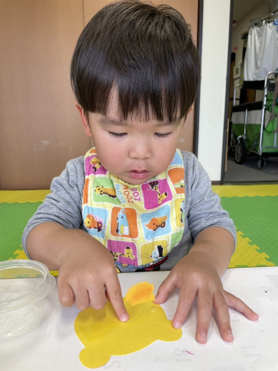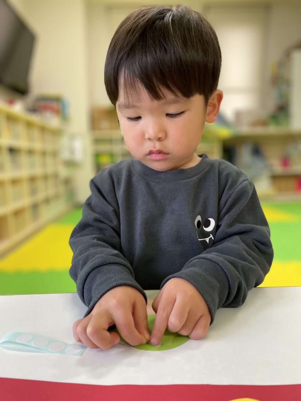 紙を折ったり、シールを貼ったり、のりを使ったり。