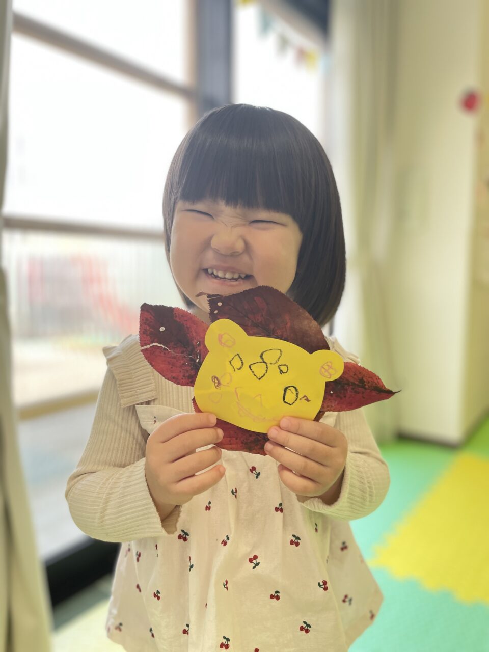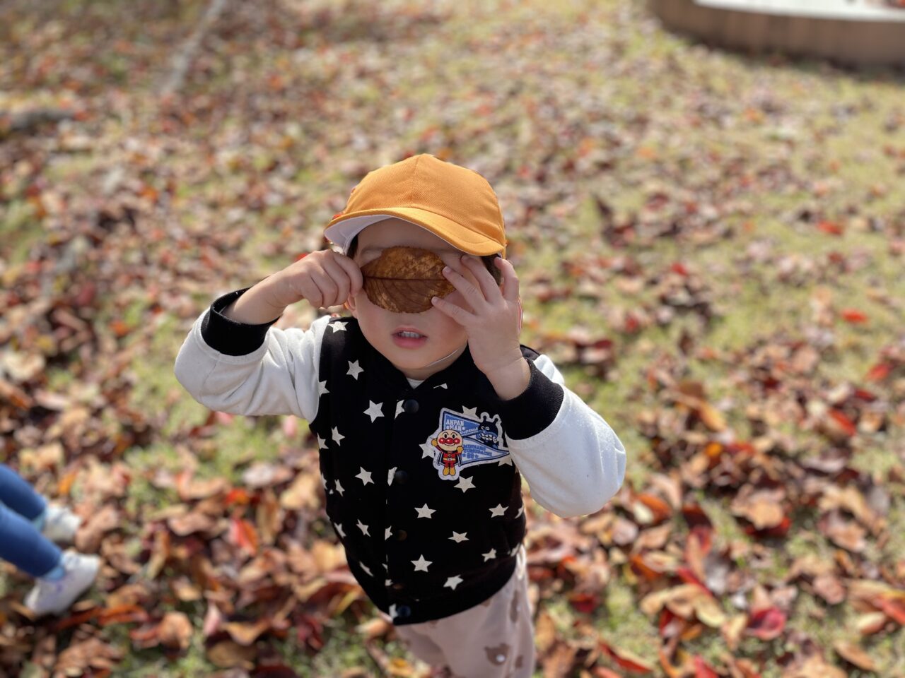 と、穴の空いた葉っぱで遊び始める子もいましたよ?