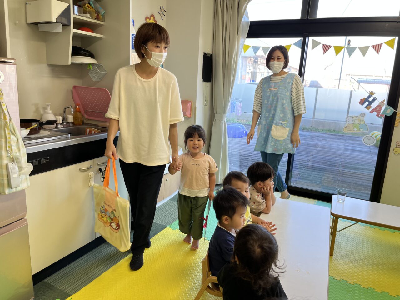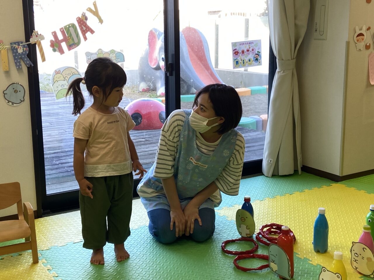 保育士とハイタッチをして喜びます?
